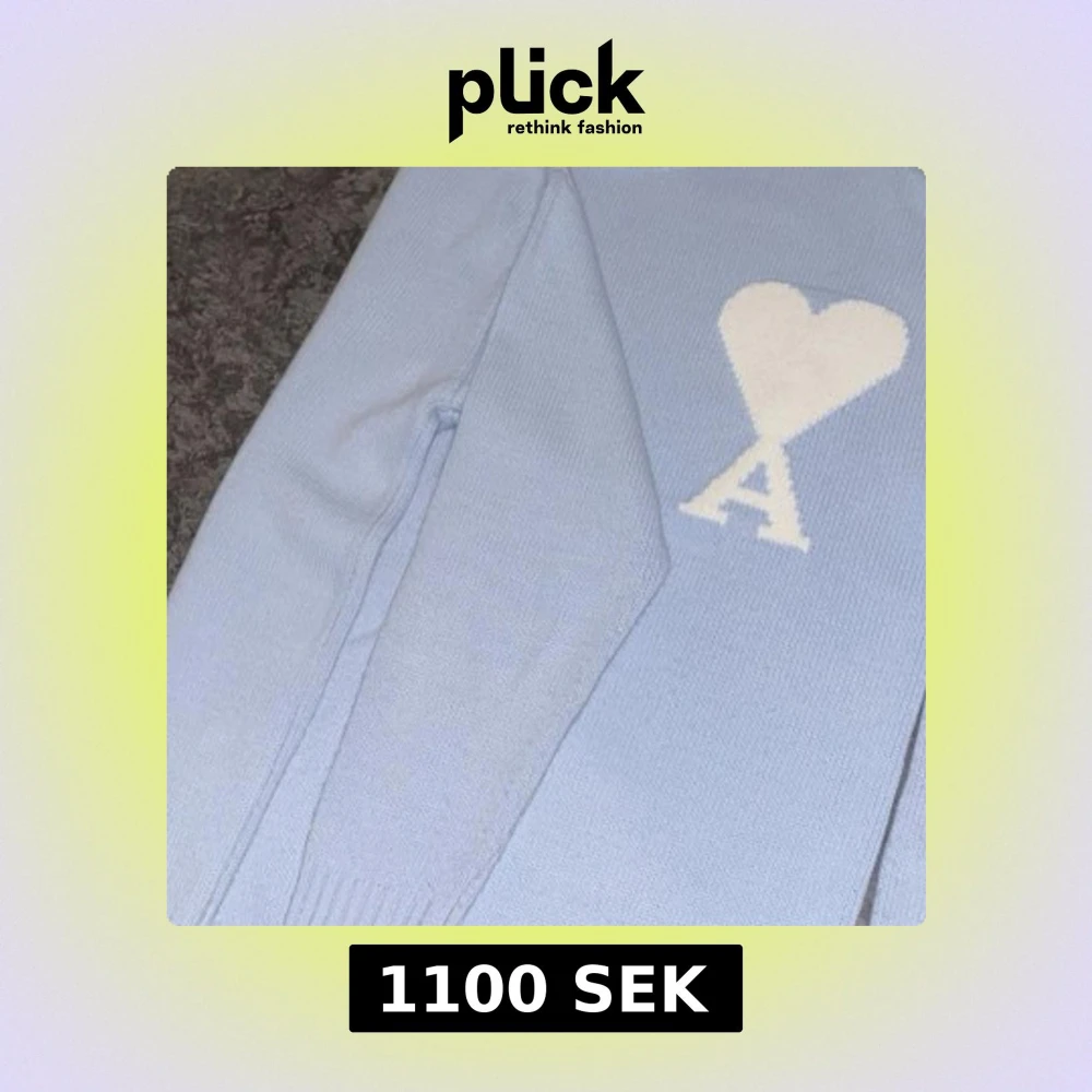 Säljer en ljusblå stickad tröja från Ami Paris storlek M, bra skick använd runt 3-4 gånger. Kom med bud.