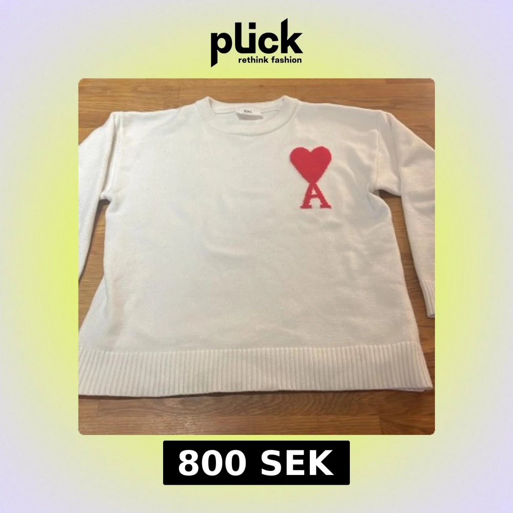 Vit stickad tröja från Ami Alexandre Mattiussi med röd hjärtlogga och bokstaven A på bröstet. Tröjan har rund hals, ribbade muddar och lång ärm. Perfekt för dig som gillar stilrena plagg med en twist. Priset är ej hugget i sten!!!