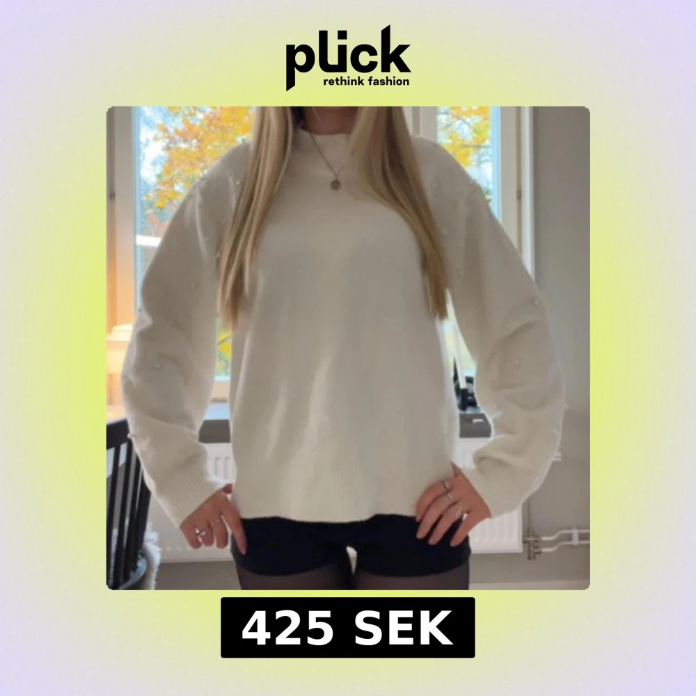 Supermysig vit stickad tröja med pärldetaljer på ärmarna. Den är perfekt för kyliga höst dagar men även enkel att matcha med allt.