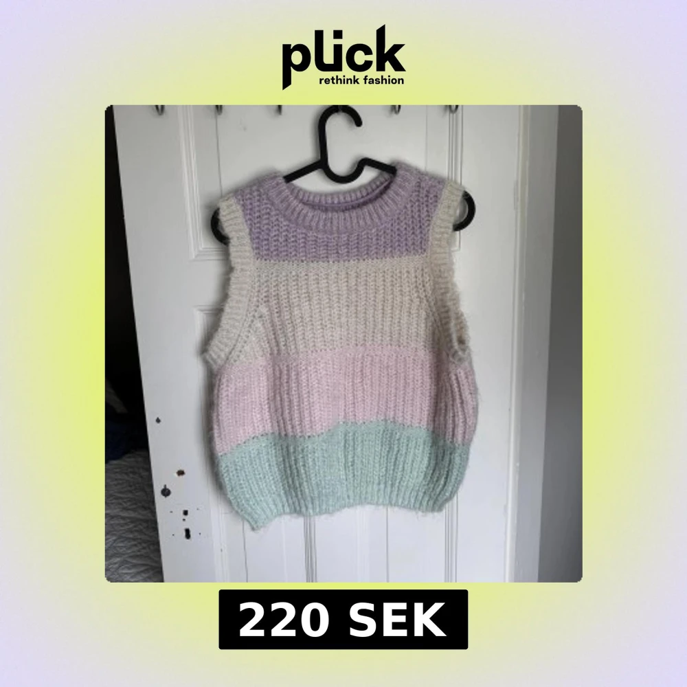Supermysig stickad väst från Vero Moda i storlek S. Västen har breda blockränder i ljuslila, offwhite, ljusrosa och mintgrön. Grovstickad med ribbad kant vid hals och ärmhål. Perfekt att styla över en skjorta eller t-shirt för en chill look. Aldrig använd