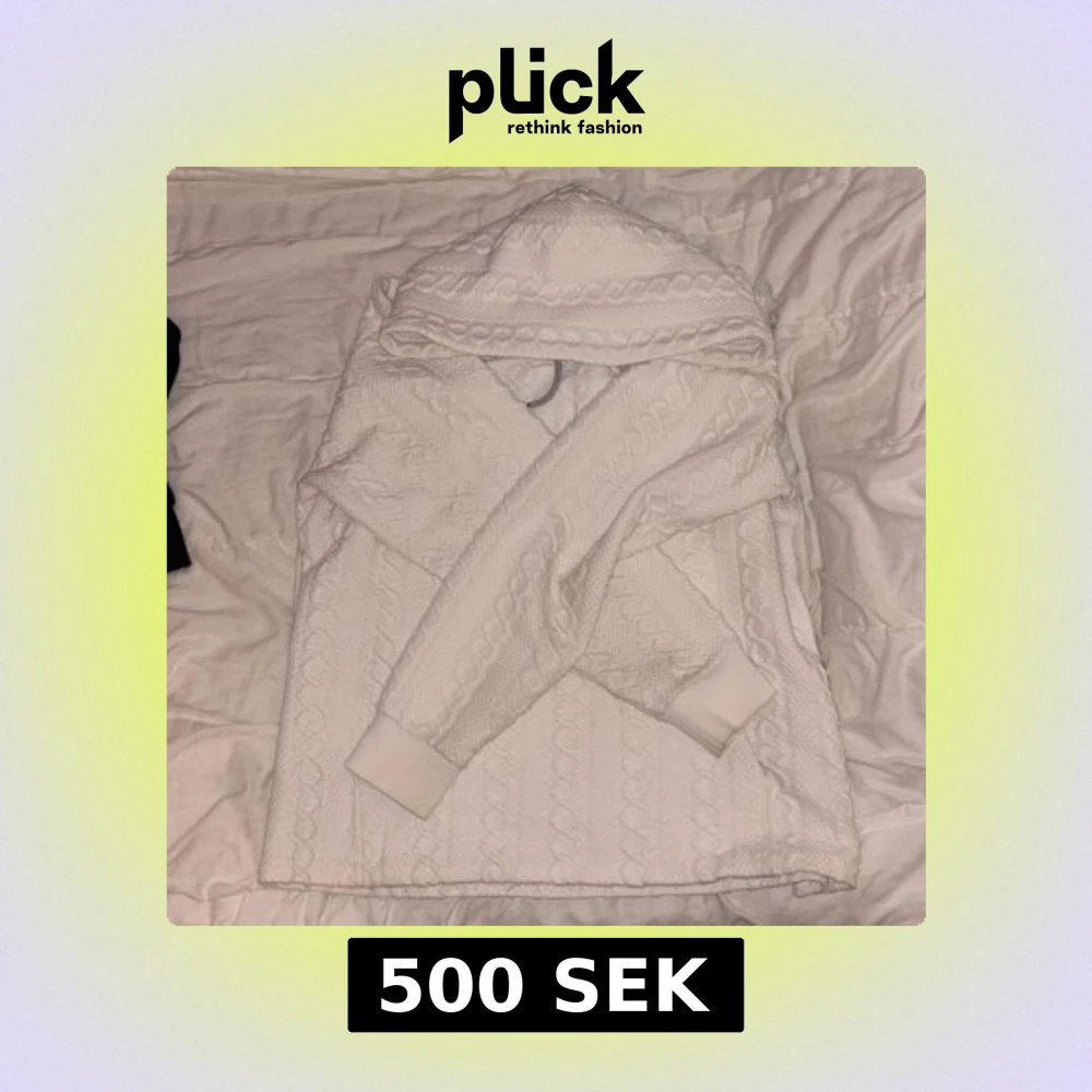 Säljer en vit hoodie från Peak Performance i storlek M. Tröjan har ett snyggt stickat kabelmönster, huva och ribbade muddar. Perfekt för dig som gillar en clean och mysig stil med sportig touch.
