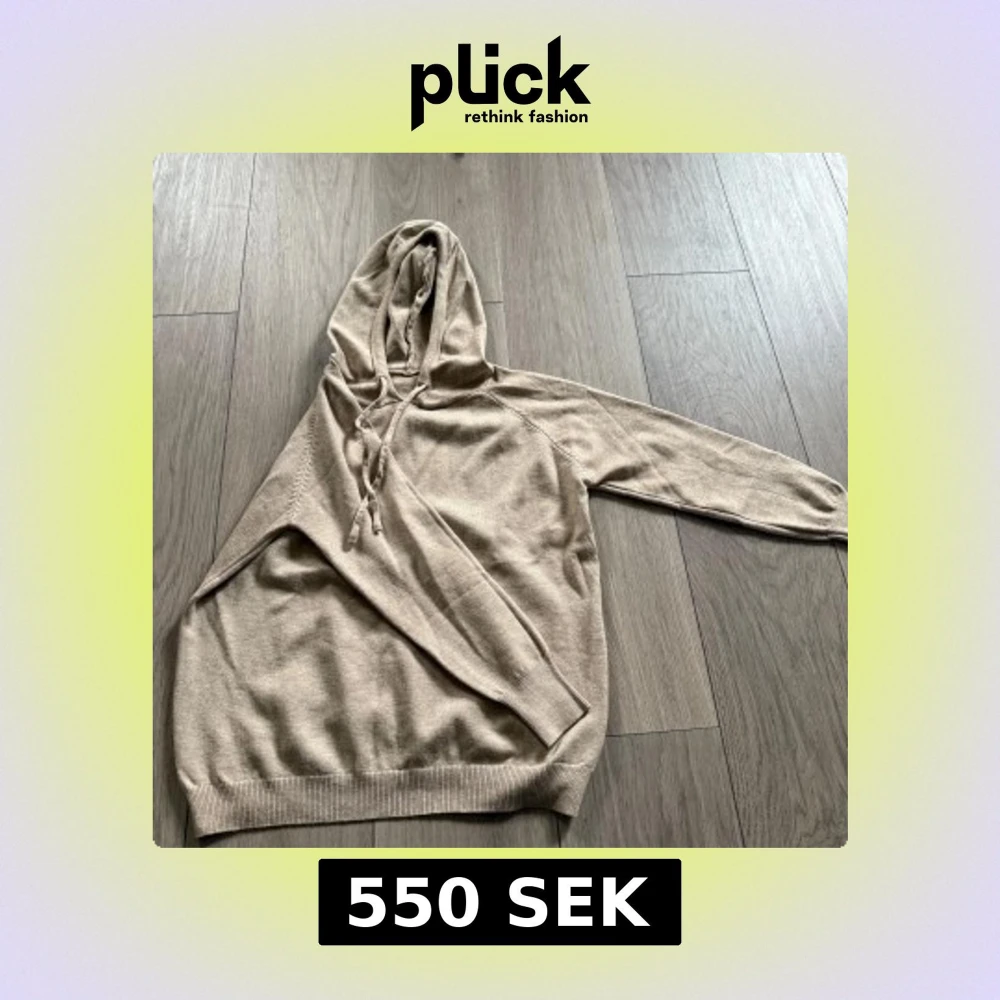 Säljer en beige stickad hoodie med huva och dragsko. Tröjan har långa ärmar och ribbade muddar vid ärmslut och nederkant. Perfekt för en avslappnad och stilren look. merinoull tröja!