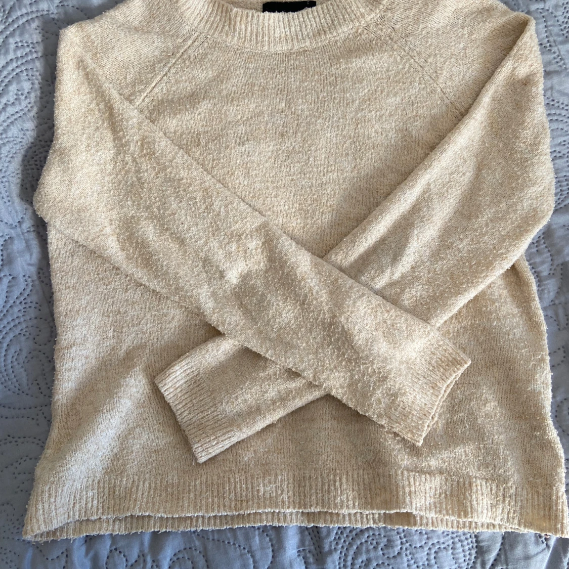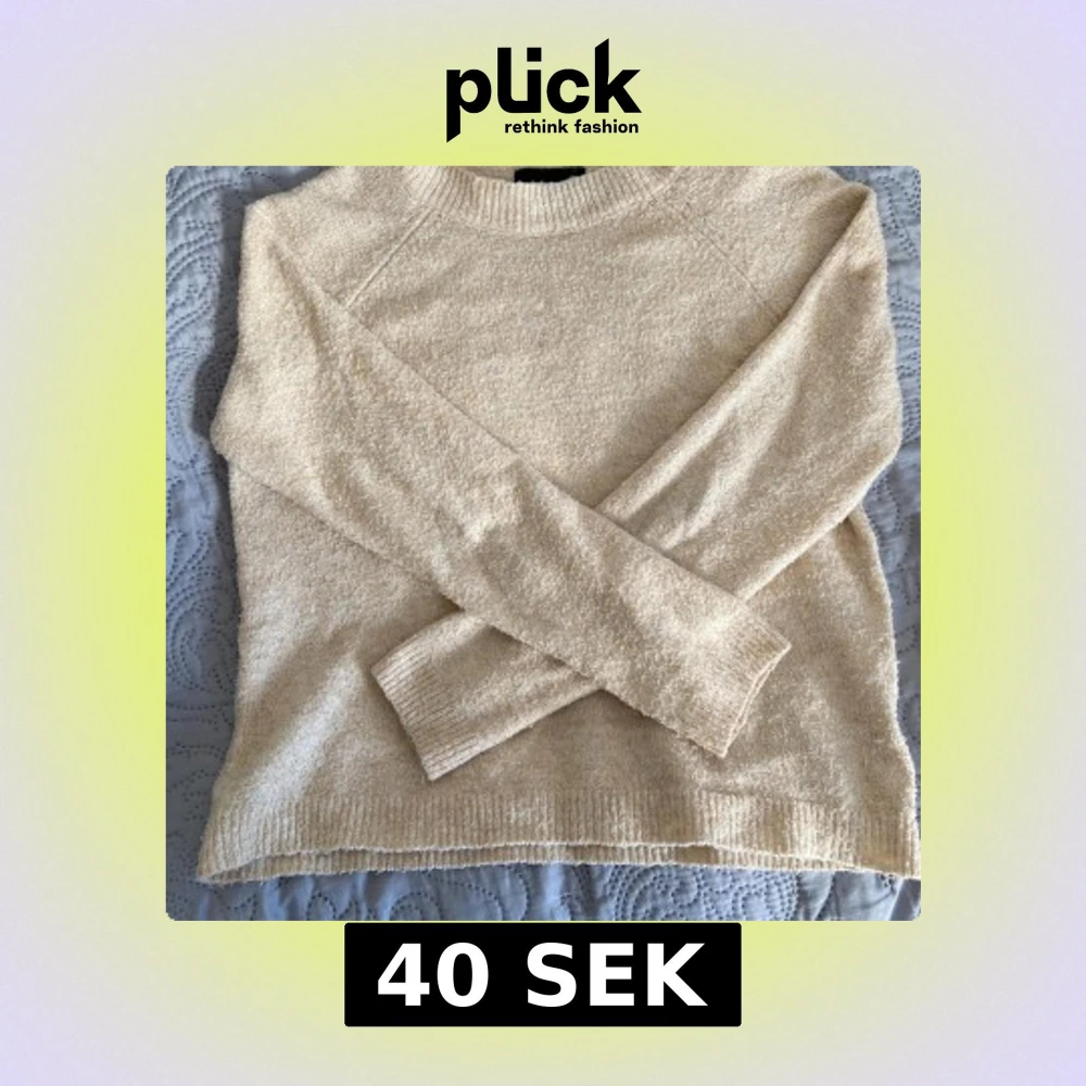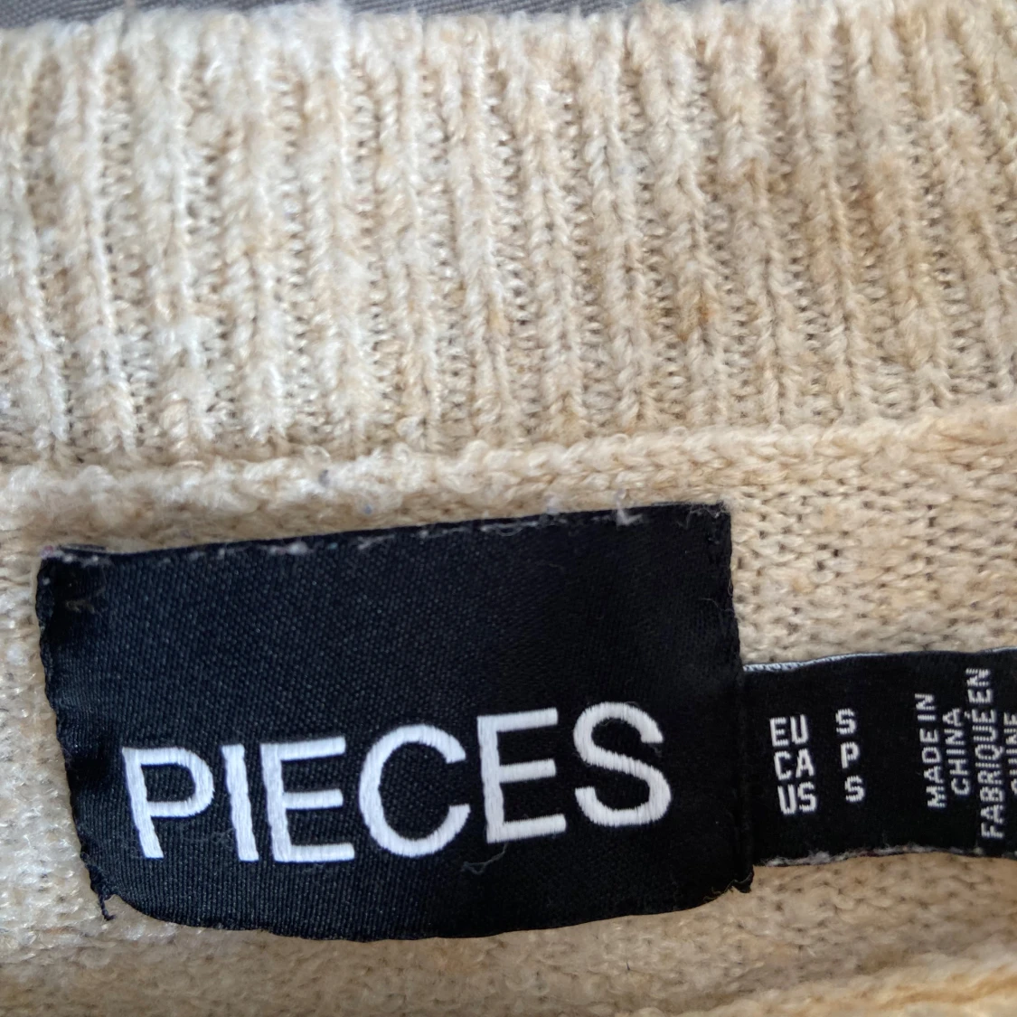 Tunn beige stickad tröja från Pieces i storlek S. Tröjan har rund hals, ribbade muddar och långärmade ärmar. Materialet är mjukt och har en lätt textur. Kontakta vid funderingar 💗