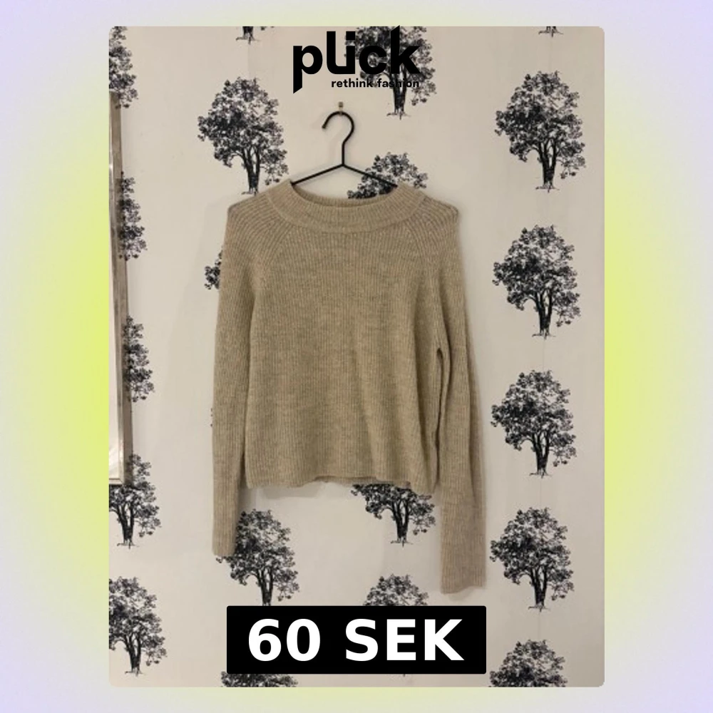Mysig beige stickad tröja med ribbad struktur och rund hals. Tröjan har lång ärm och en något croppad passform som ger en avslappnad vibe. Perfekt att matcha med jeans eller kjol för en enkel men snygg look.