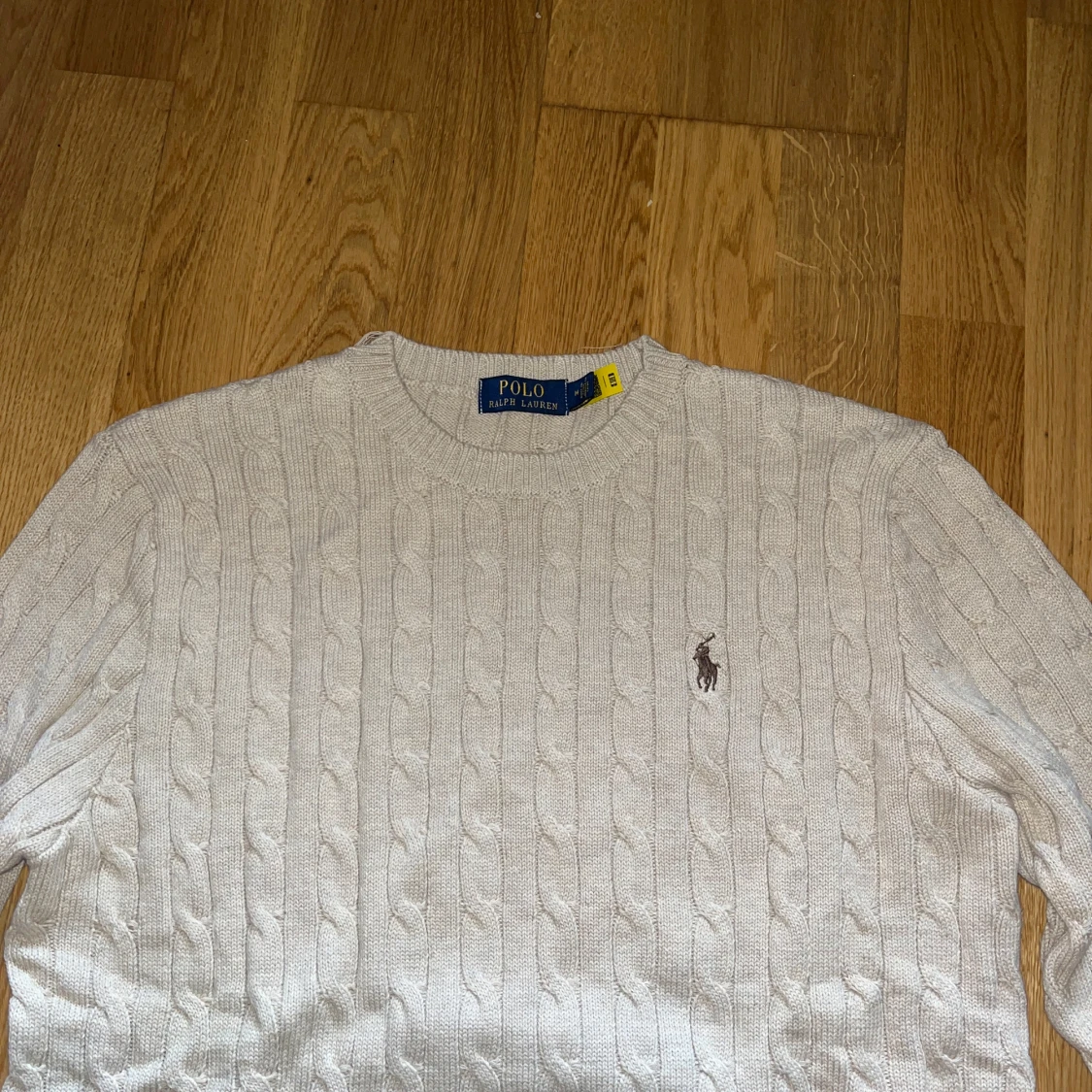en helt oanvänd Stickad tröja från märket Polo Ralph Lauren i färgen beige. Storlek M