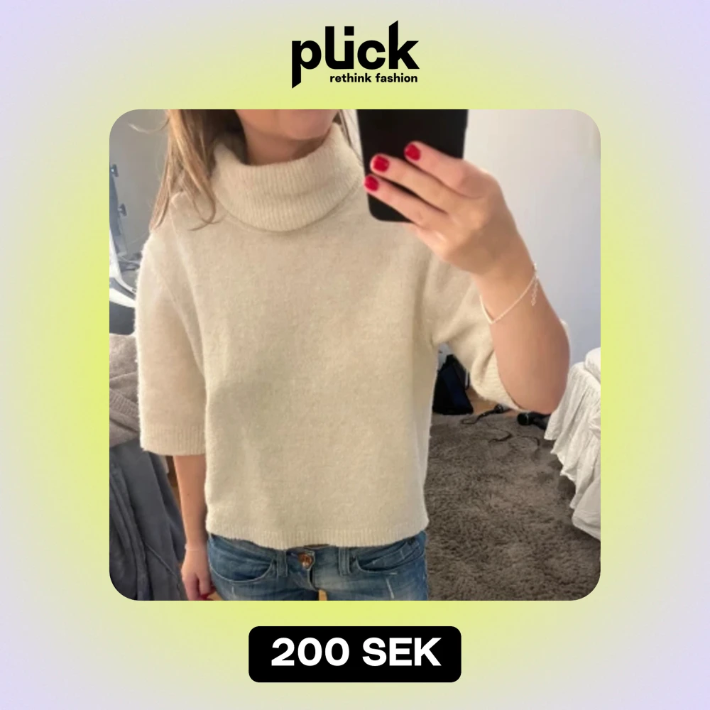 Kommer inte att gå ner i pris. Vit stickad kortarmad tröja med polo krage. Använd fåtal gånger. Inga defekter.