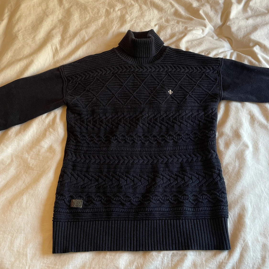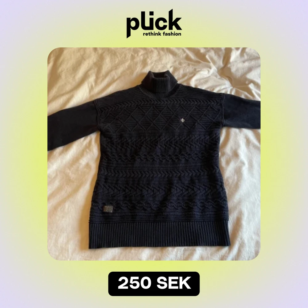 En marinblå polotröja, som är stickad. Använd ett fåtal gånger, och är i fint skick!