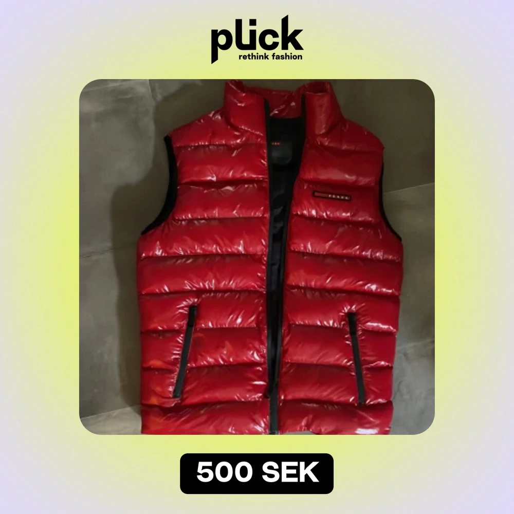 Säljer en exklusiv och elegant röd väst från Prada. Västen är i utmärkt skick och har använts sparsamt. Perfekt för lager på lager under kyliga dagar eller som ett stilrent komplement till din outfit. Passar både casual och mer uppklädda tillfällen.