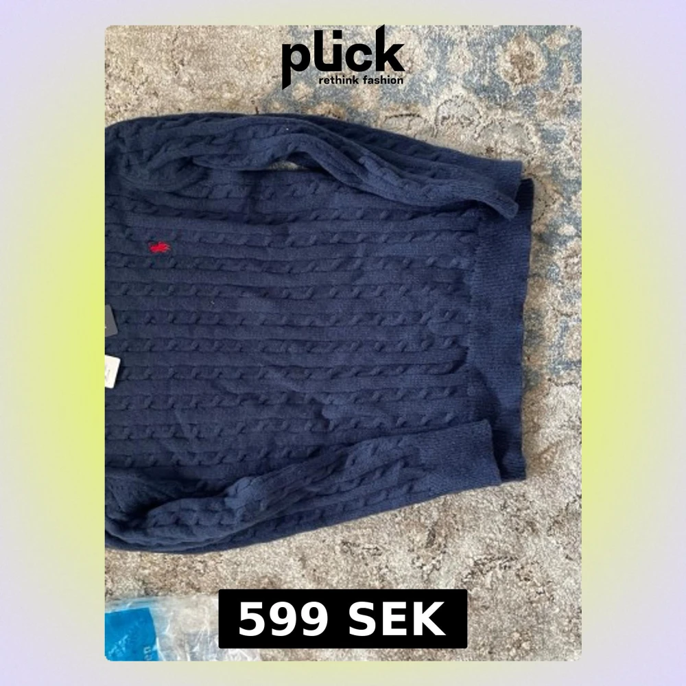 Mörkblå kabelstickad tröja från Polo Ralph Lauren med rund halsringning och den klassiska röda logotypen broderad på bröstet. Tröjan har ribbade muddar vid ärmslut och nederkant. Perfekt för dig som gillar tidlös och stilren design.