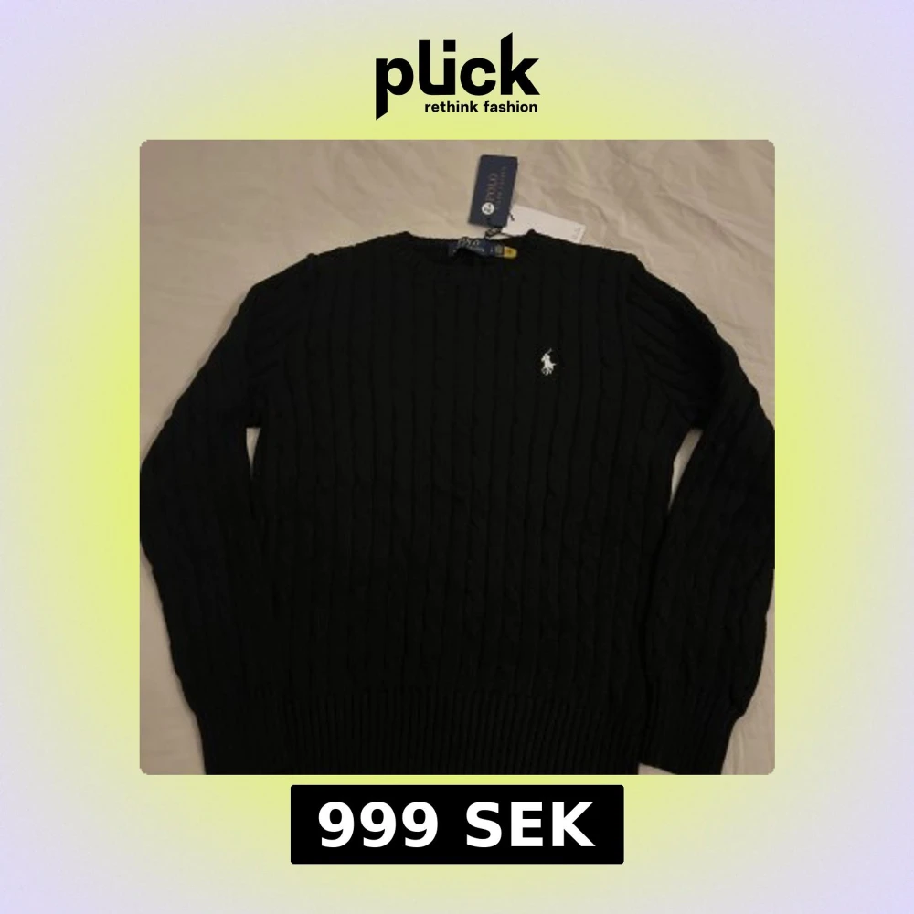 Svart kabelstickad tröja från Polo Ralph Lauren med klassisk rund hals och vit broderad logga på bröstet. Tröjan har långa ärmar och ribbade muddar vid ärmslut och nederkant. Perfekt för dig som gillar stilrena och tidlösa plagg.