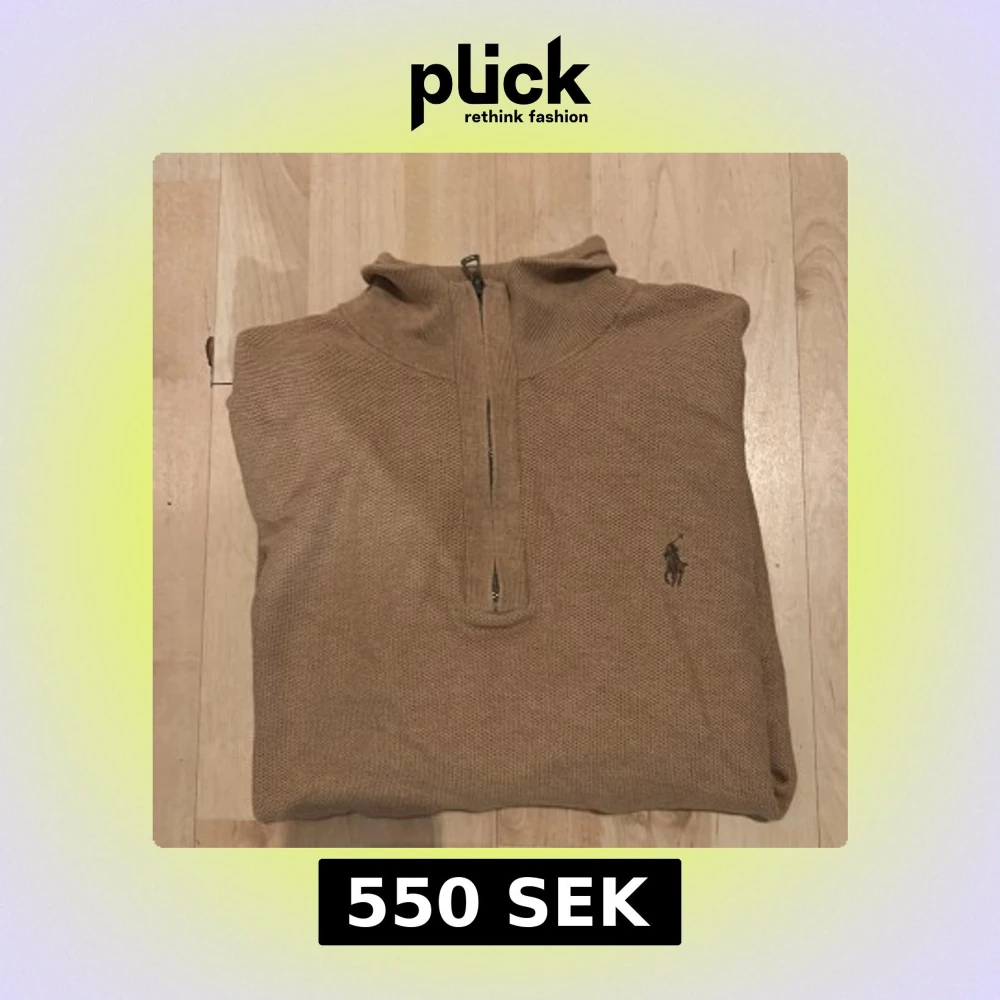 Snygg beige stickad tröja från Polo Ralph Lauren med half zip och klassisk broderad logga på bröstet. Tröjan har en hög krage och är perfekt för dig som gillar stilrena och tidlösa plagg. Passar dig som vill ha en chill och clean look.