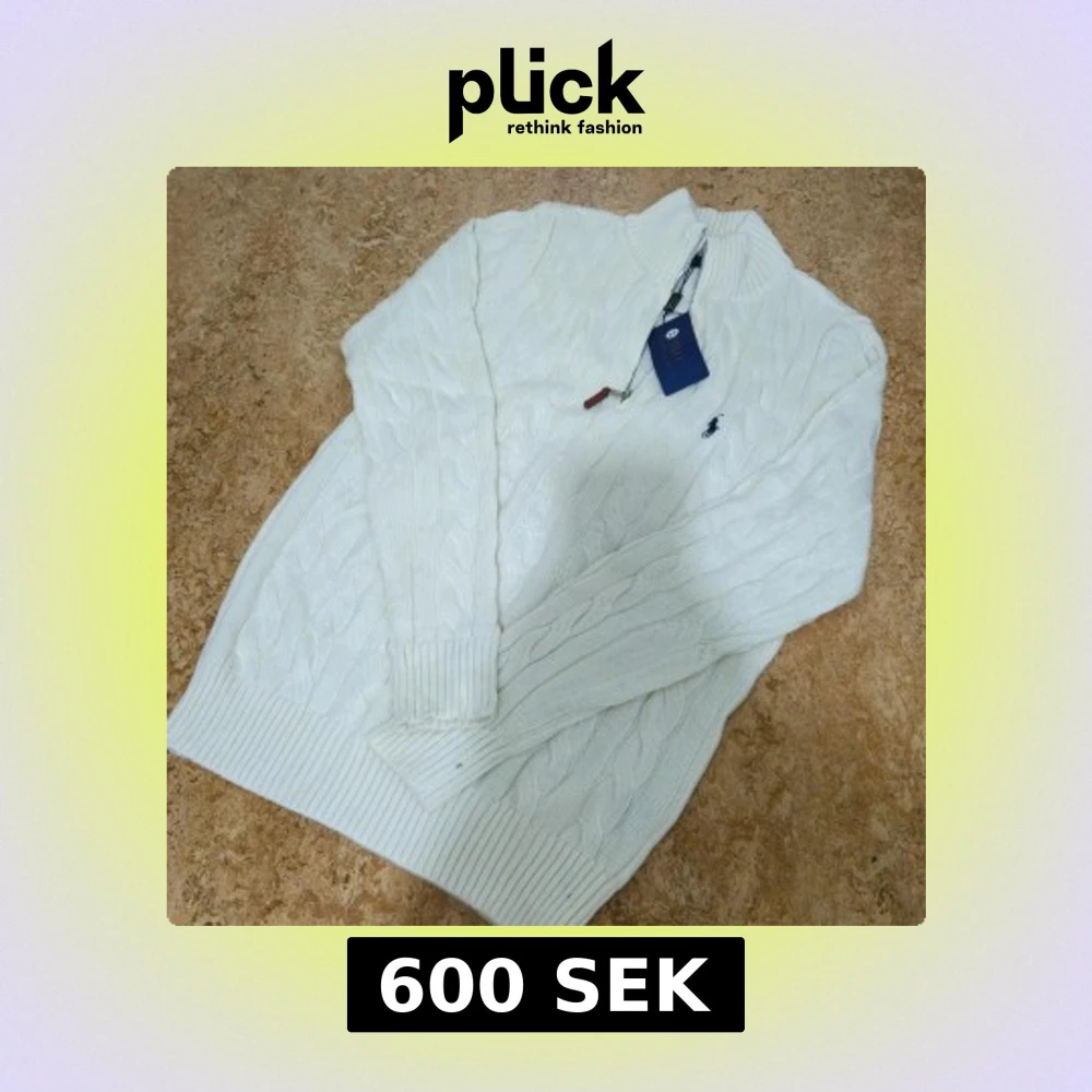 Helt ny Kabelstickad vit tröja från Polo Ralph Lauren med halv dragkedja, M, 1t1, skickas samma dag.
