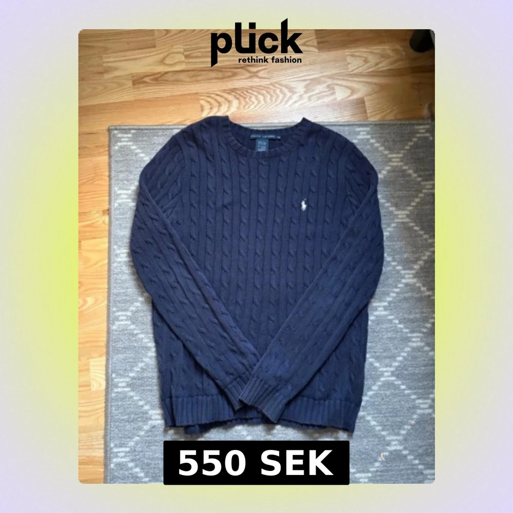 Kabelstickad mörkblå tröja från Ralph Lauren med klassisk rund hals och diskret broderad logga på bröstet. Tröjan har långa ärmar och ribbade muddar vid ärmslut och nederkant. Perfekt för dig som gillar stilren och tidlös design larger fit.