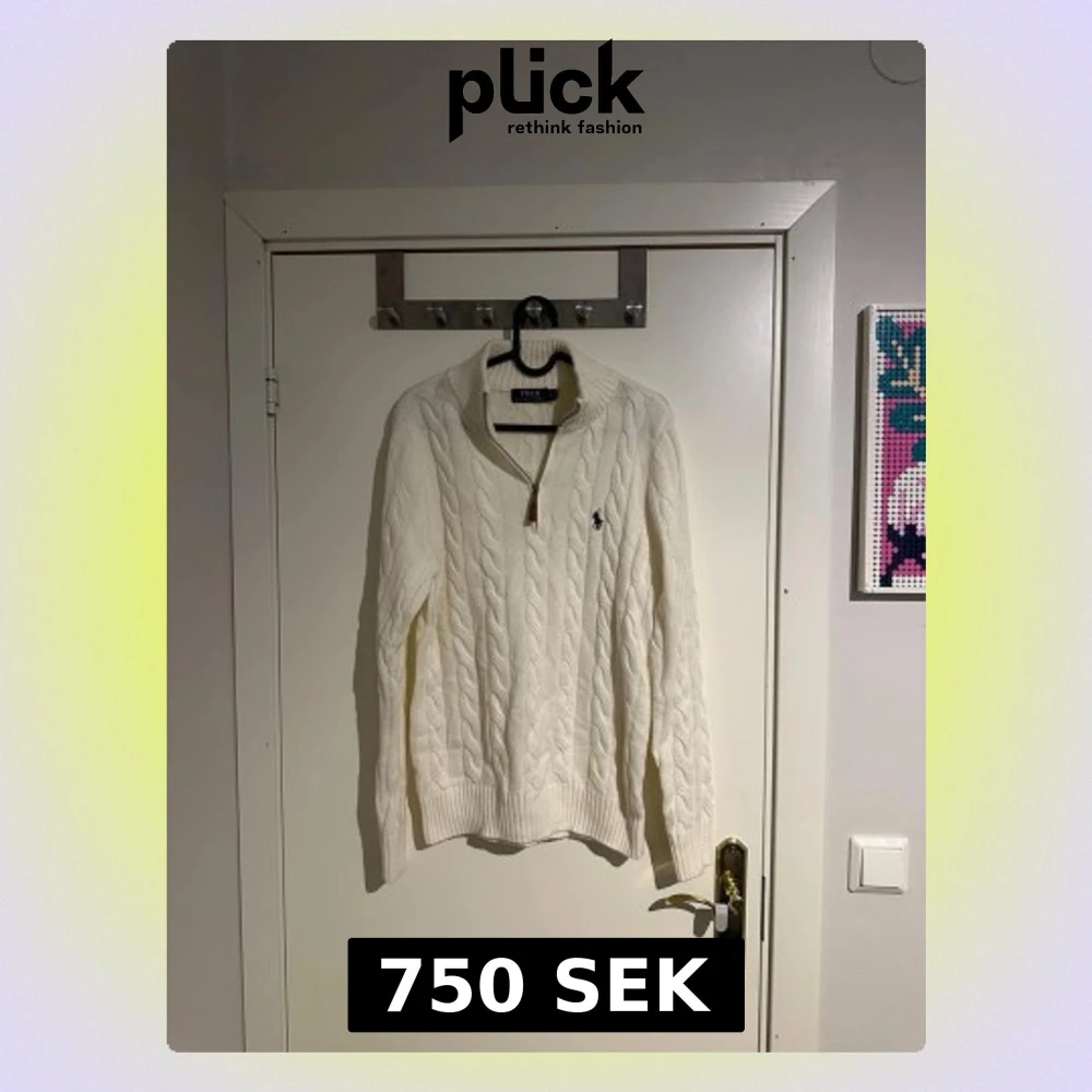 Kabelstickad vit polotröja från Polo Ralph Lauren med half zip och ribbad krage. Klassisk logga broderad på bröstet. Tröjan är långärmad och har en chunky, mysig känsla som passar perfekt till kyligare dagar.