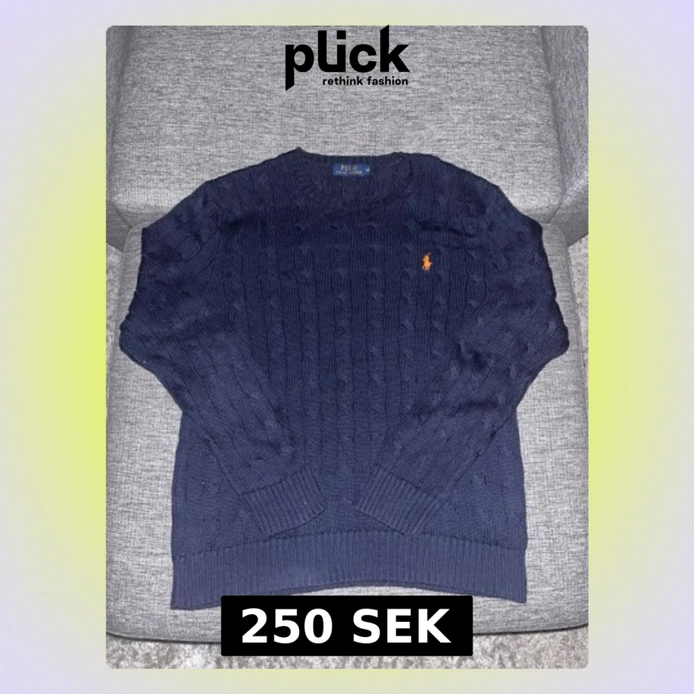 Snygg mörkblå kabelstickad tröja från Polo Ralph Lauren med klassisk orange logga på bröstet. Tröjan har rund hals, ribbade muddar och är gjord i mjukt stickat material. Perfekt för dig som gillar stilrena och tidlösa plagg.