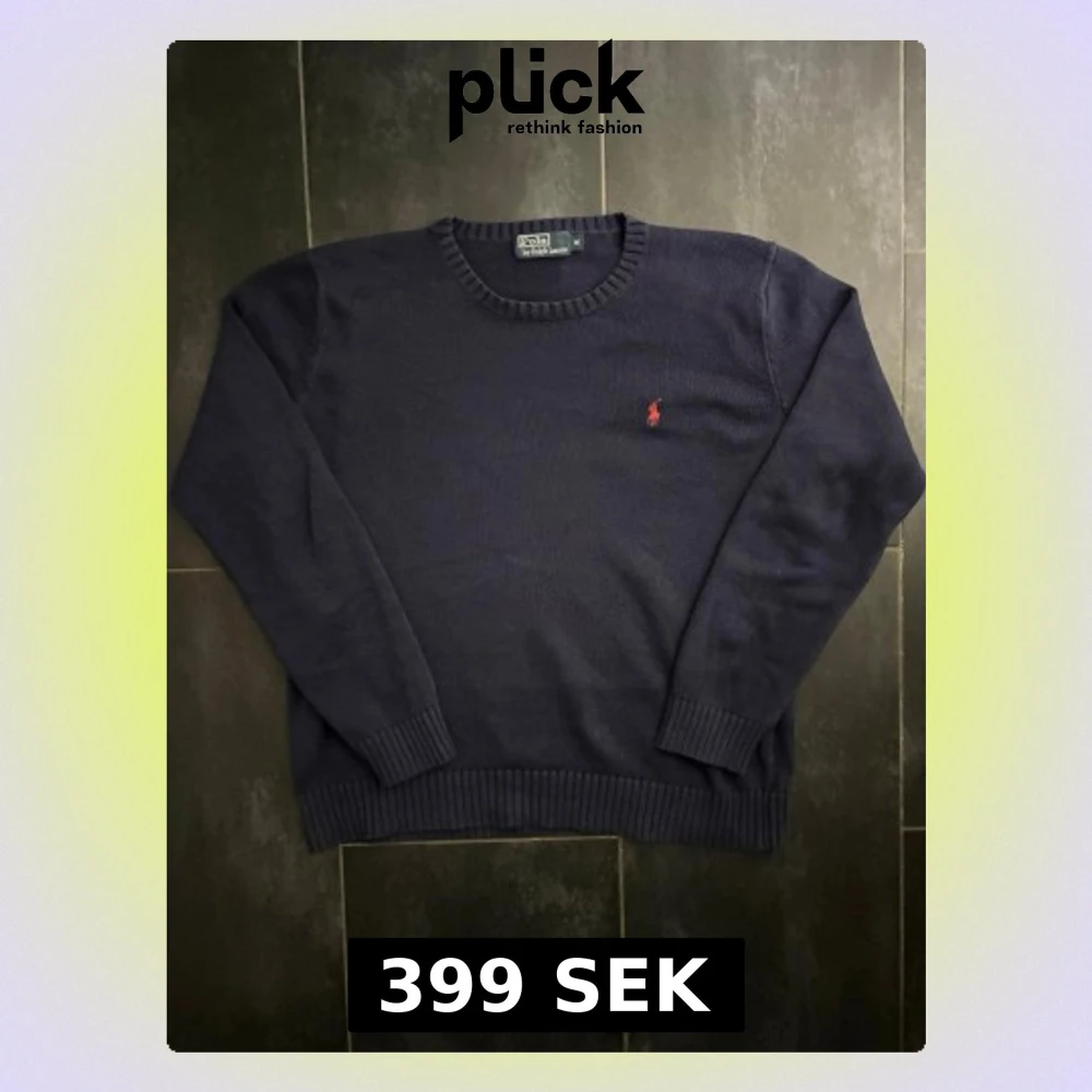 Klassisk mörkblå stickad tröja från Polo Ralph Lauren med rund halsringning och ribbade muddar. Tröjan har den ikoniska röda broderade loggan på bröstet. Perfekt till jeans eller chinos för en clean look.