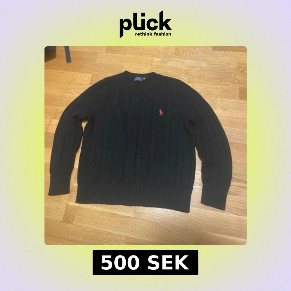 Svart kabelstickad tröja från Polo Ralph Lauren med klassisk röd broderad logga på bröstet. Tröjan har rund hals och långa ärmar, perfekt för dig som gillar stilren och tidlös design. Materialet är mjukt och värmande, passar grymt under höst och vinter.