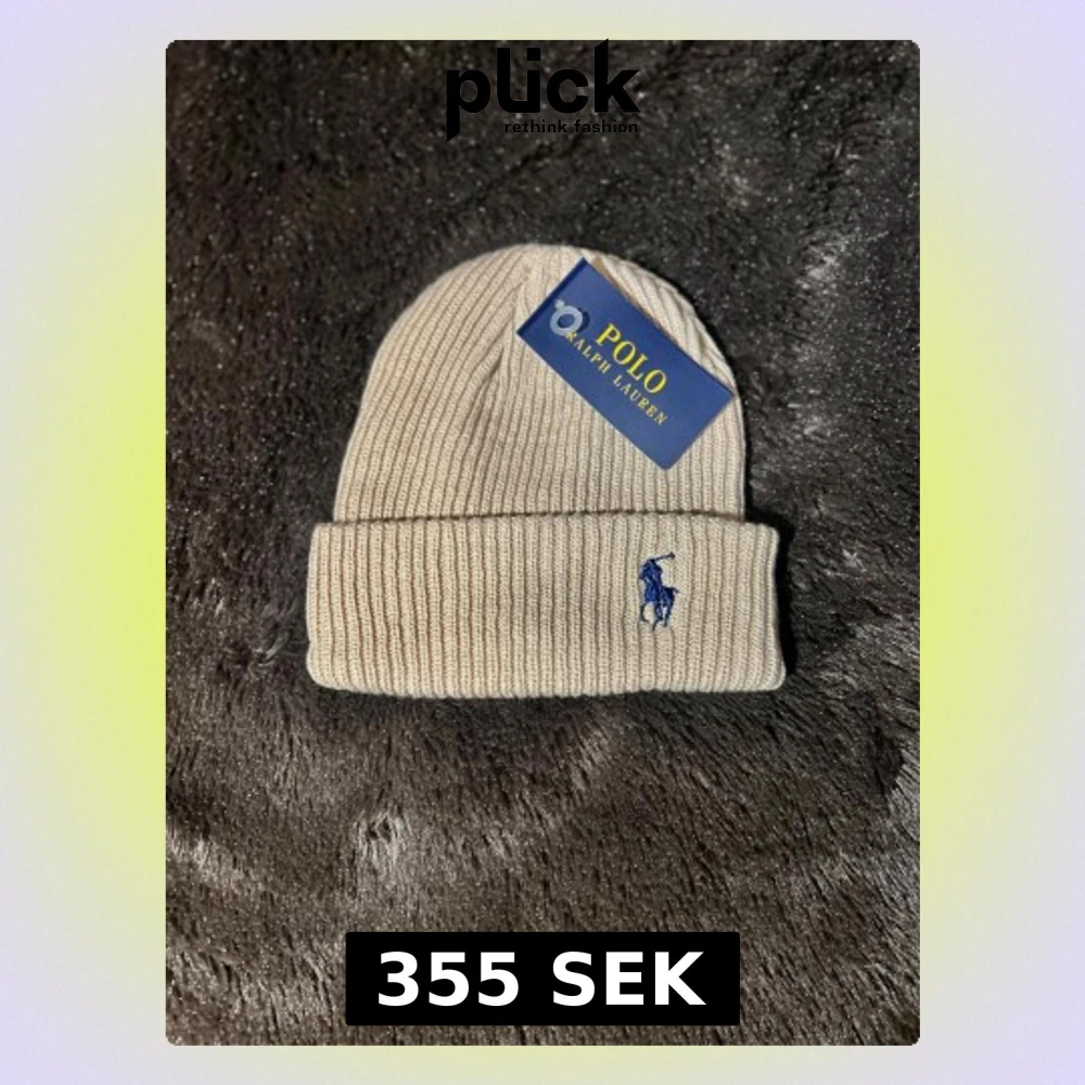 Snygg beige ribbstickad mössa från Polo Ralph Lauren med klassisk blå broderad logga framtill. Mössan har uppvikt kant och är tillverkad i mjukt stickat material som håller dig varm och stilren under kalla dagar.