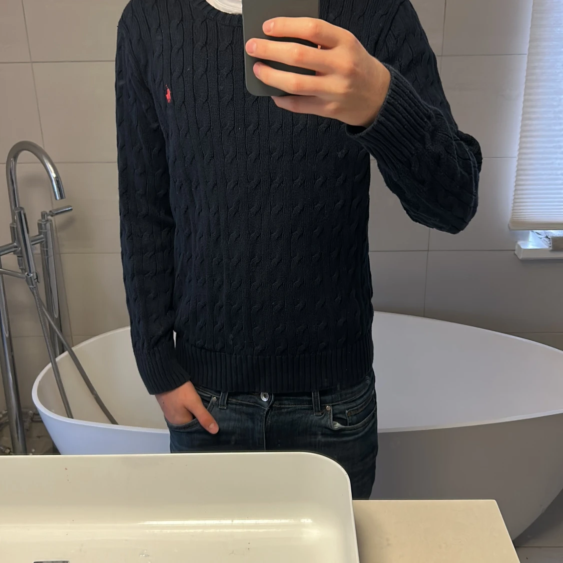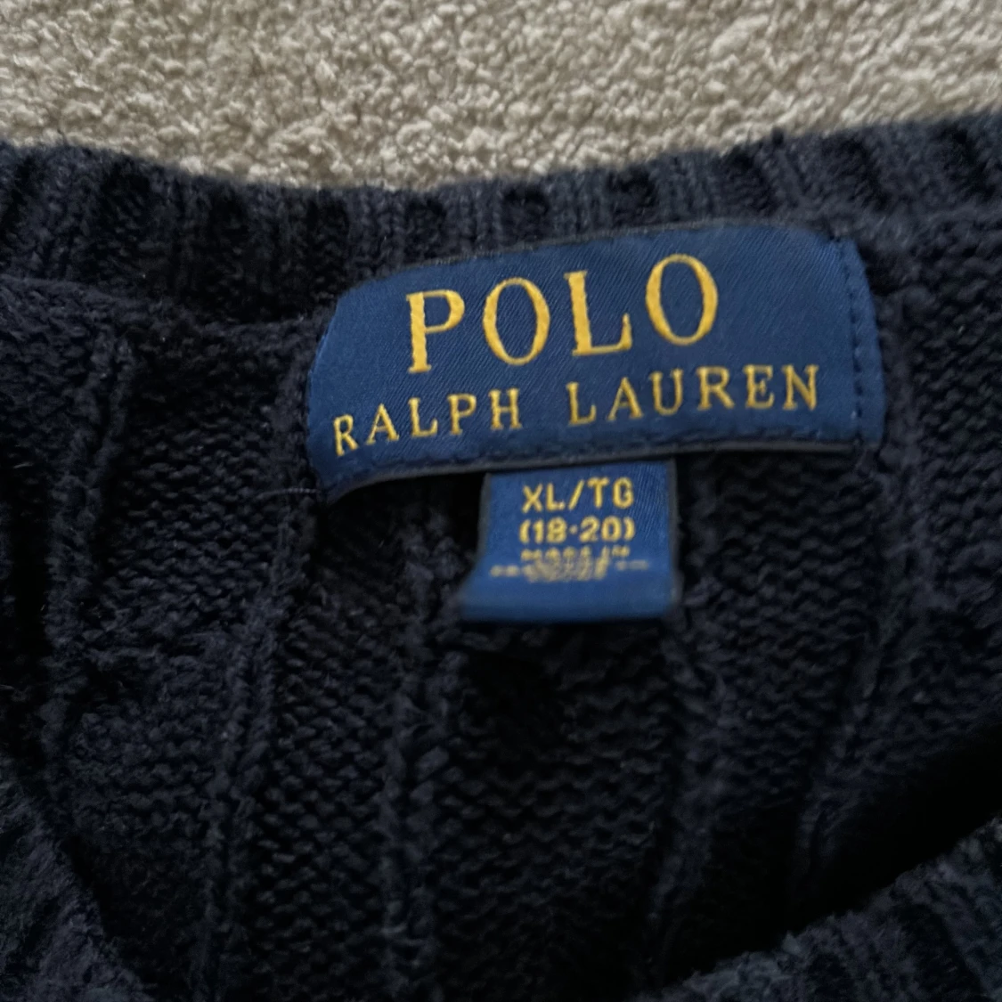 Fet kabelstickad tröja i från Polo Ralph lauren. Storlek 18-20 i barn storlek men motsvarar s-m. Tröjan är i bra skick och självklart äkta
