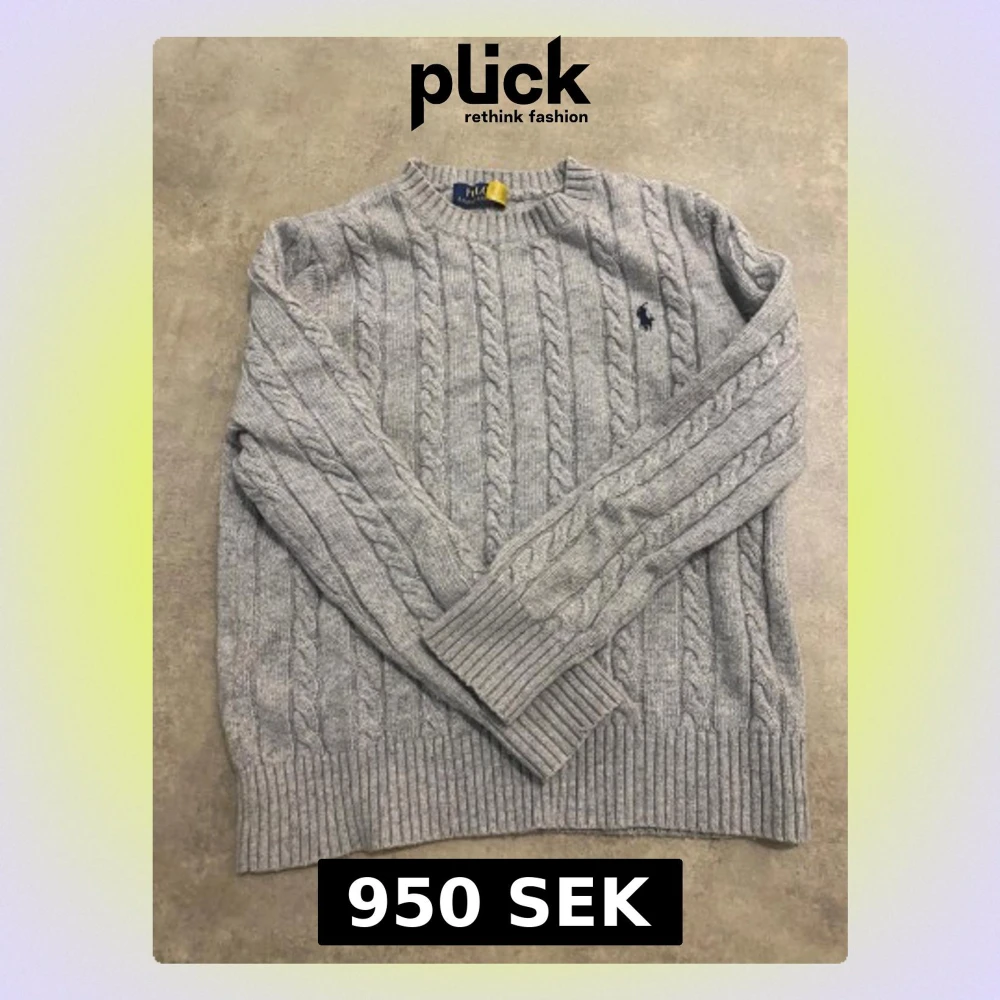 Säljer en grå stickad tröja från Polo Ralph Lauren med klassiskt kabelstickat mönster och rund hals. Tröjan har långa ärmar och ribbade muddar vid ärmslut och nederkant. Diskret Polo-logga broderad på bröstet. Perfekt för dig som gillar stilren och chill look. Det är storlek s men den kan va liten i storleken