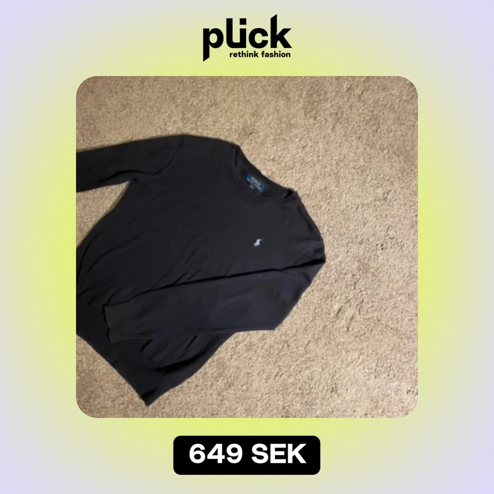 Säljer en marinblå stickad sweatshirt i mycket bra skick👍Riktigt fet tröja i storlek small🤑Modellen är 180cm lång📏 Plagget har inga defekter alls! Vid frågor är det bara att höra av sig!🗣️
