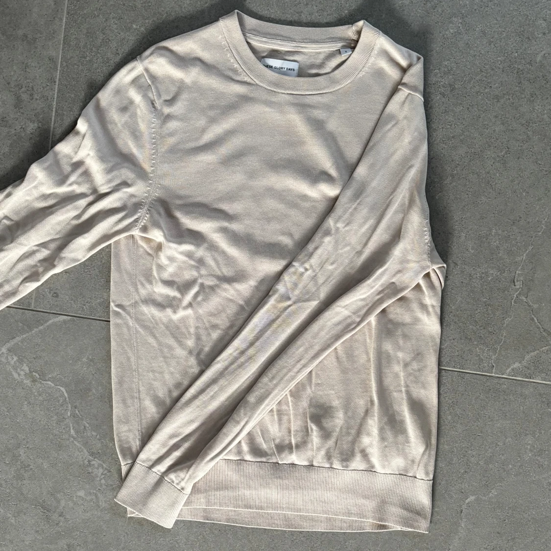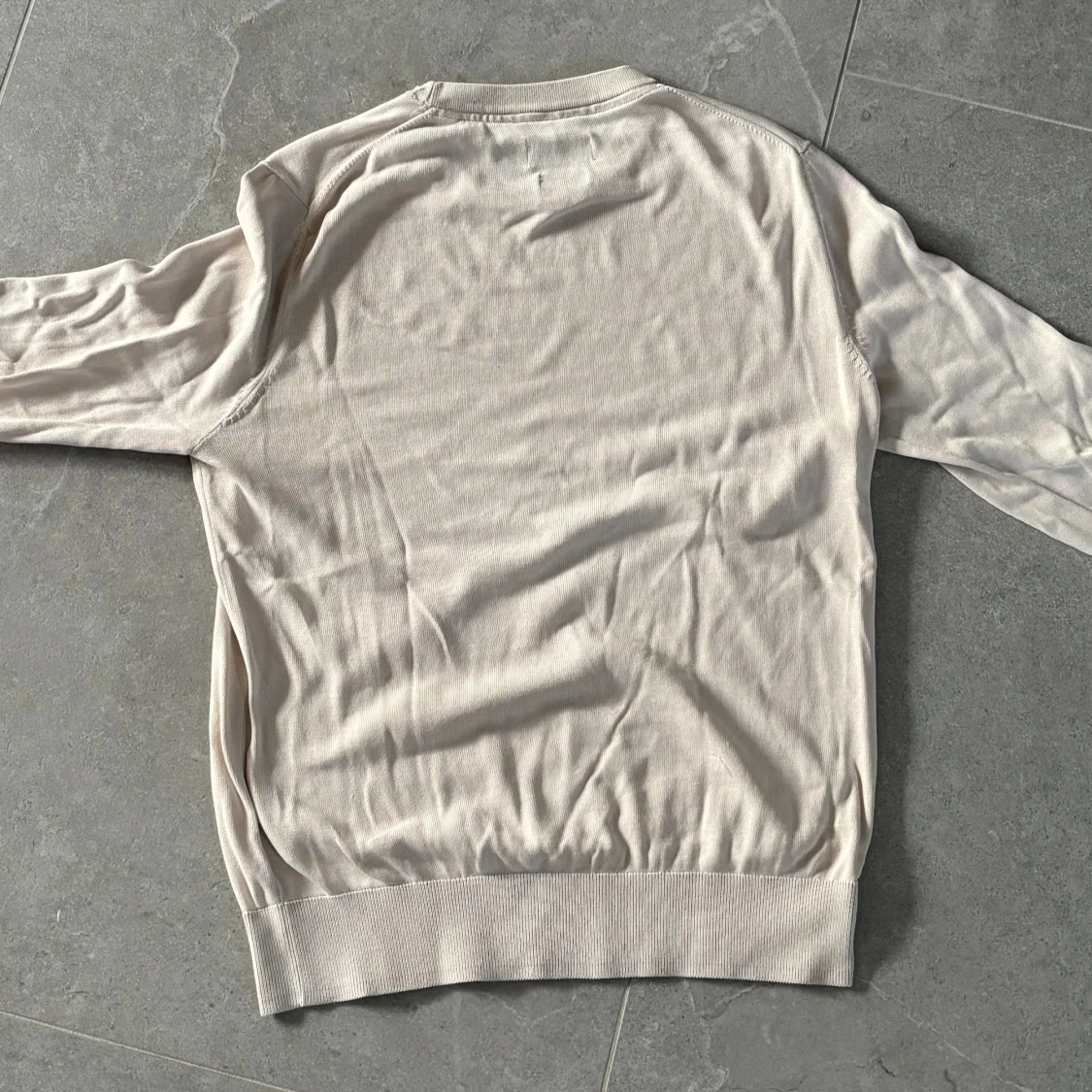 Beige Crewneck Tröja från Volt som jag inte har användning av längre. Den är i användbart skick men har hål i armhålorna som jag fixat se bild 3. Pris inte fast.