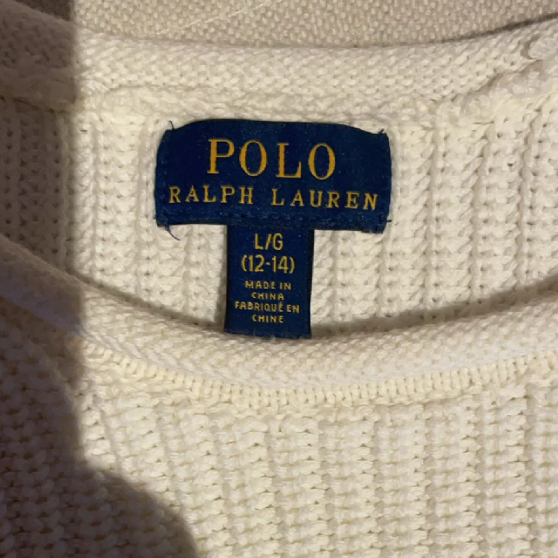 Stickad tröja från polo Ralph Lauren!! Använd få tal gånger💘Den är i storleken 12/14 vilket ja skulle säga motsvarar xs