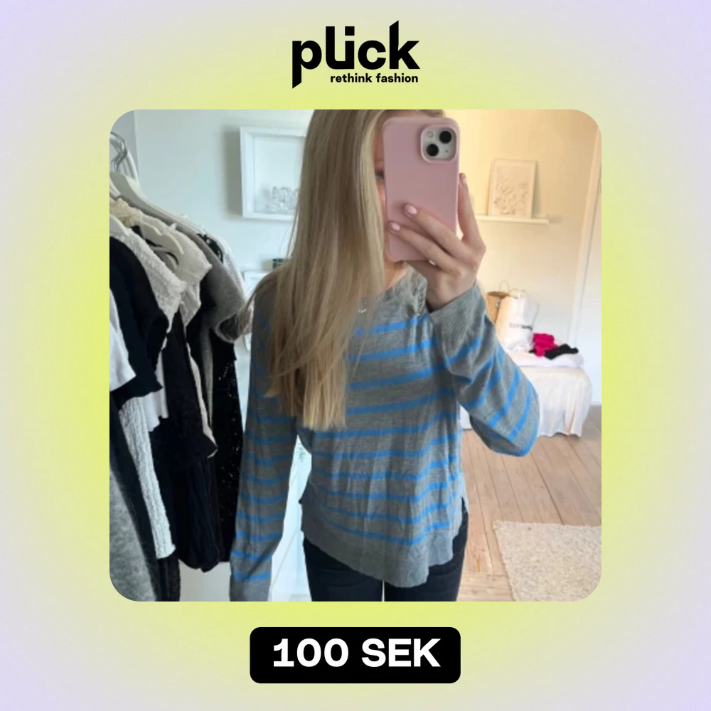 Grå blå randig stickad tröja som inte är använd mer än 3 gånger, väldigt bra skick. Köpt för ca 200kr.