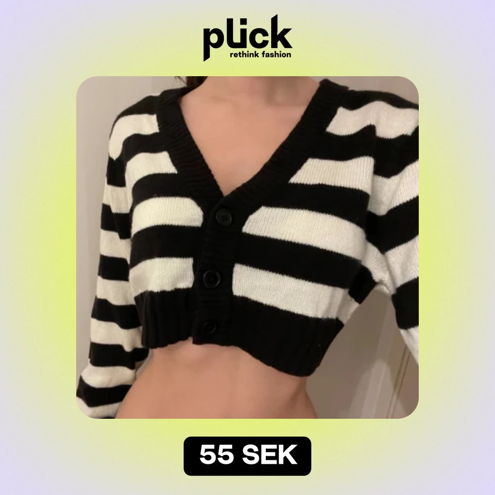 En svart vit randig långarmad tröja från H&M DIVIDED. Använd ungefär 2 gånger, men har inga skador eller fläckar! Är en XS i storleken, men kan också klassificeras som S, då den inte är så liten, och ärmarna är ganska långa.