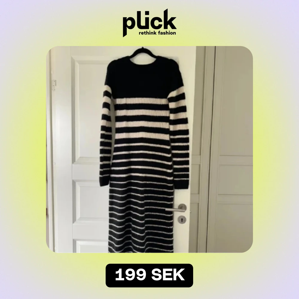 Säljer en superfin randig långklänning i svart och vit. Den är stickad och har långa ärmar, perfekt för höst och vinter. Klänningen är i ny, endast testad och passar både till vardags och festligare tillfällen. Den är både bekväm och stilren!