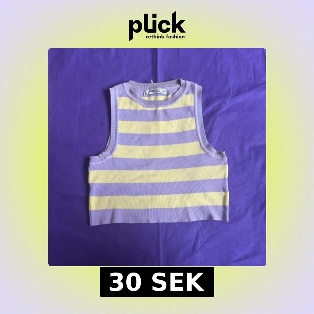 Pastelliga komplementfärger i lila och gul. Stickat tyg, mycket stretchig. 80% viskos, 20%polyamid Knappt använd.