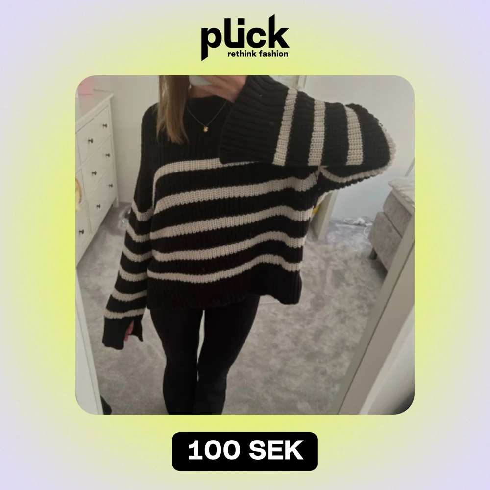 Så fin o mysig randig stickad med slits i ärmar och på sidorna. Passar lite olika beroende på hur man vill att den ska sitta men jag har strl S💕