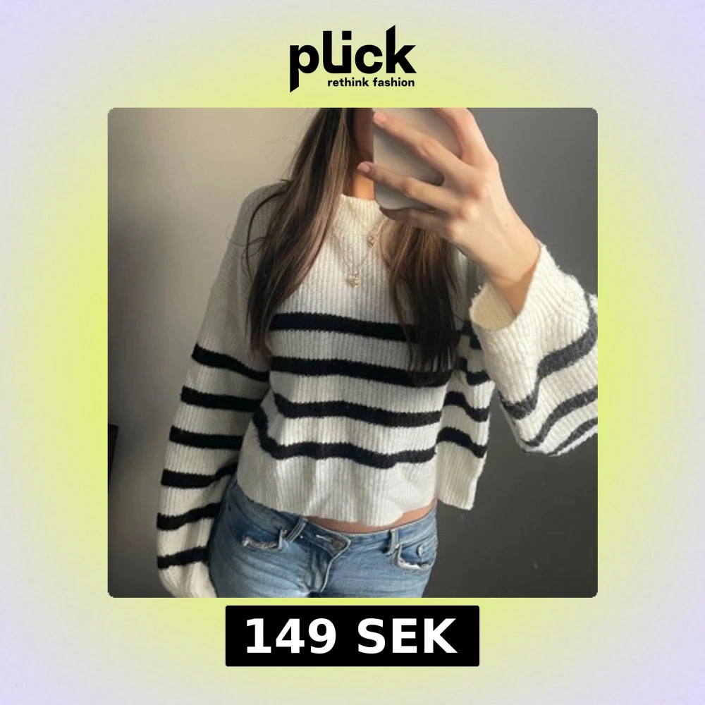 Säljer en snygg randig tröja i svart och vit. Tröjan är ribbad och ger en skön känsla. Passar utmärkt till jeans eller kjol.