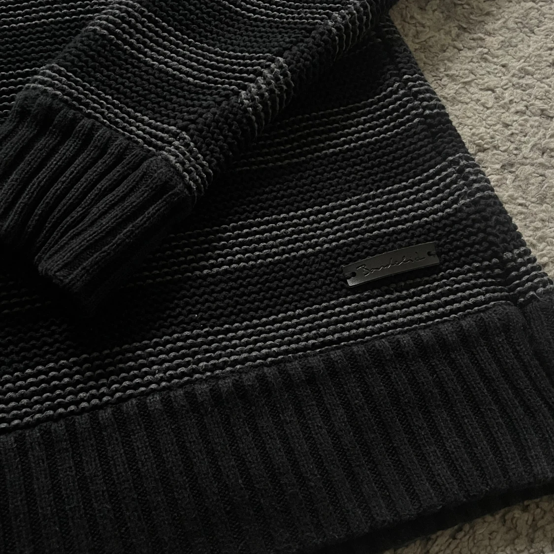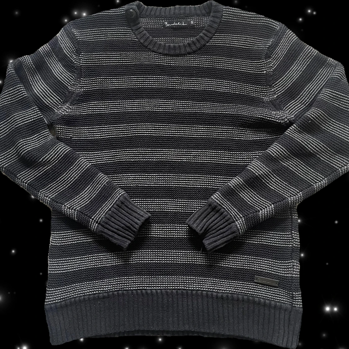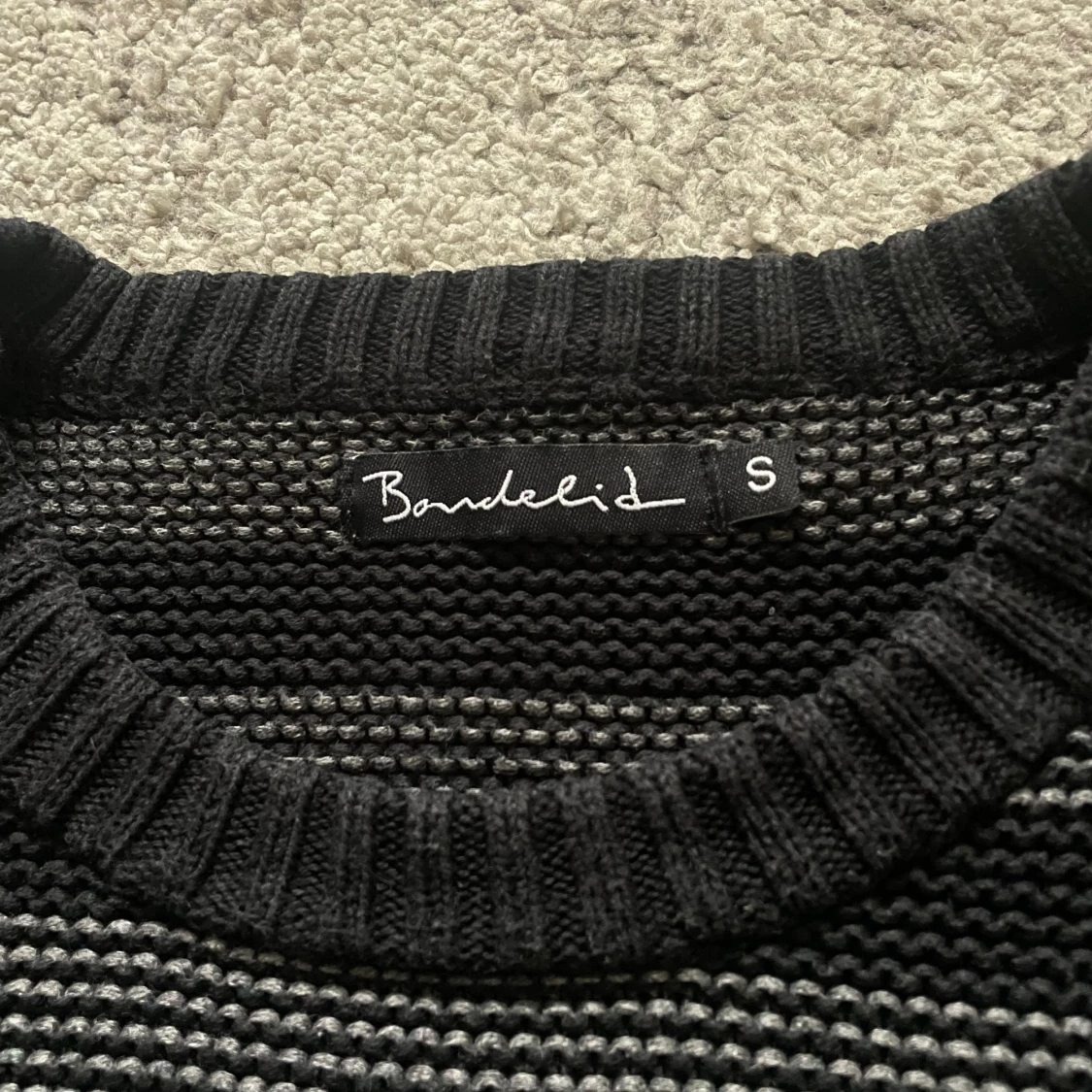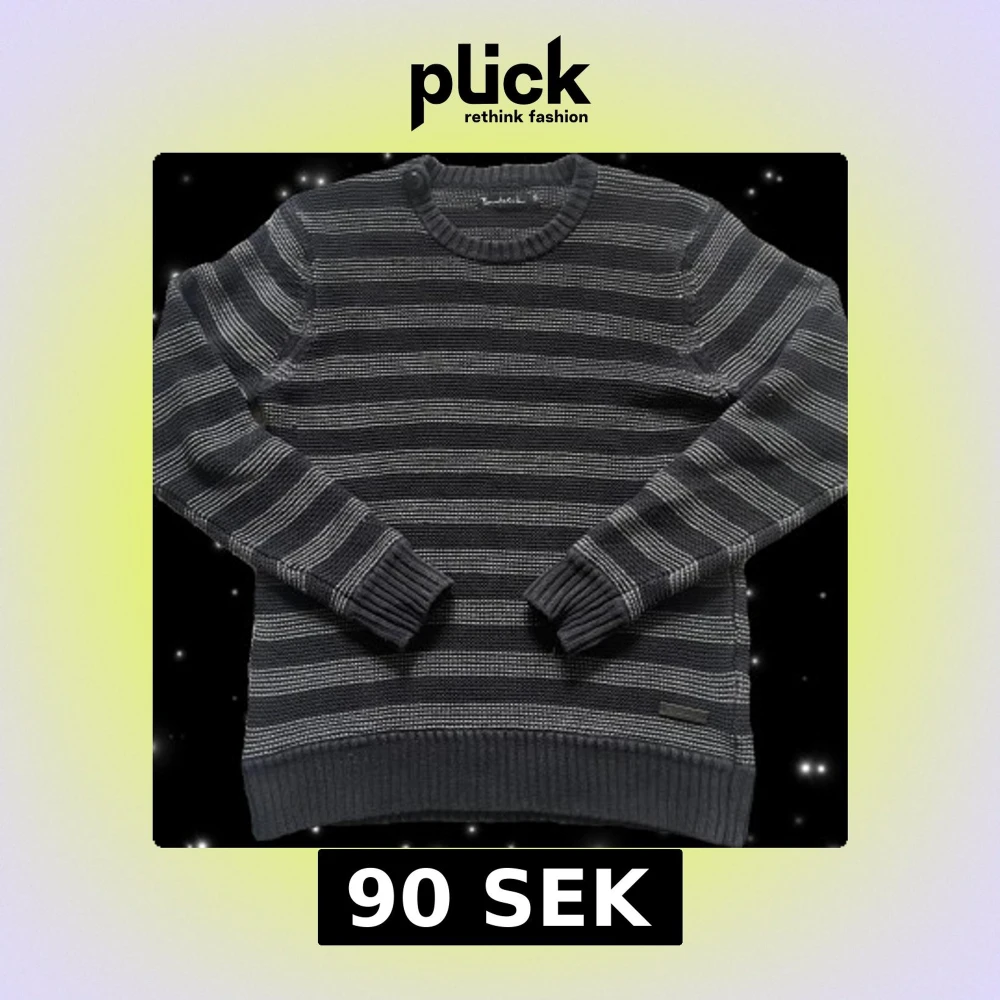 Svart grå randig stickad tröja från Bondelid, jättefint skick i storlek S, 100% bomull