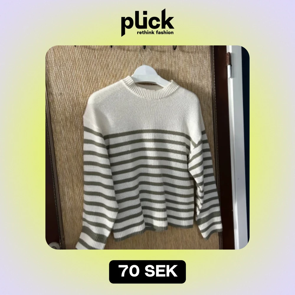 Säljer en superfin stickad tröja med vita och gröna ränder. Den är perfekt för höst och vinter, och är riktigt mysig och varm. Tröjan har långa ärmar och en normal passform. Perfekt för att hålla sig varm under kyliga dagar!