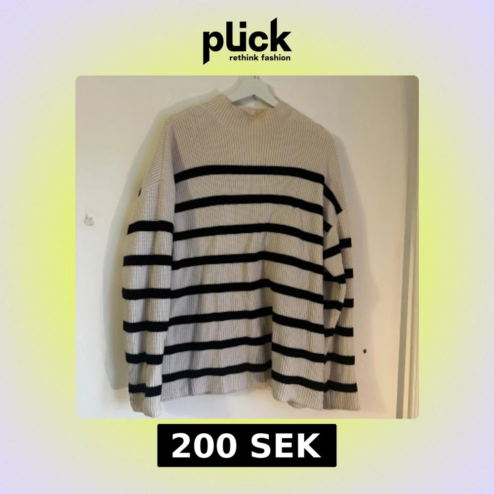 Säljer en snygg stickad tröja med breda svarta ränder. Beige/vit.