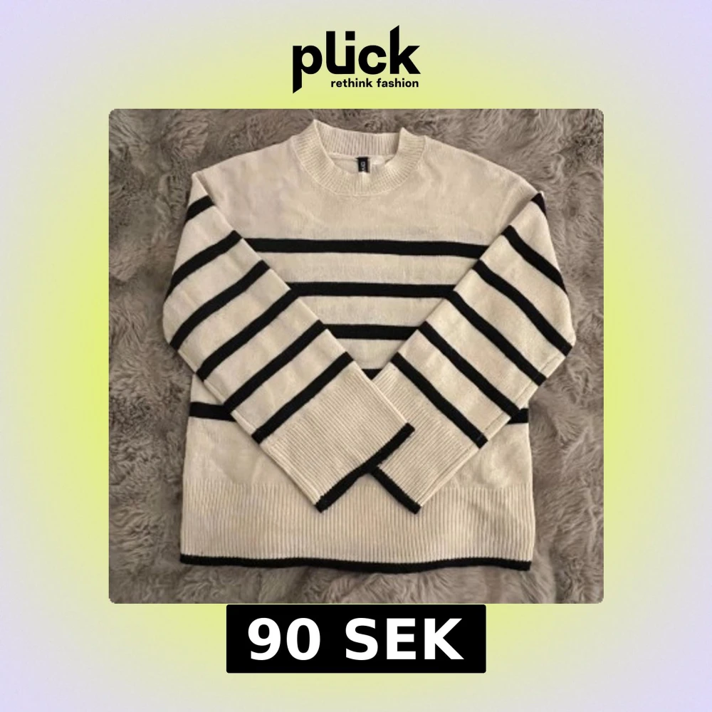 Superfin stickad tröja från H&M Divided i beige med svarta ränder. Tröjan är lite nopprig men inget som syns🤍