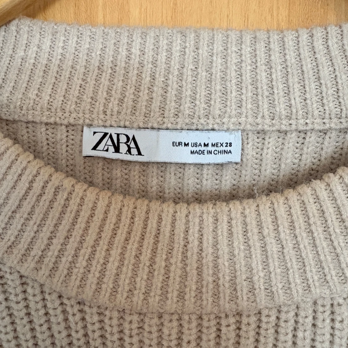 Säljer en beige stickad tröja från Zara med svarta ränder och röda detaljer nedtill. Tröjan är tjock och mysig perfekt till hösten. I storlek M💘