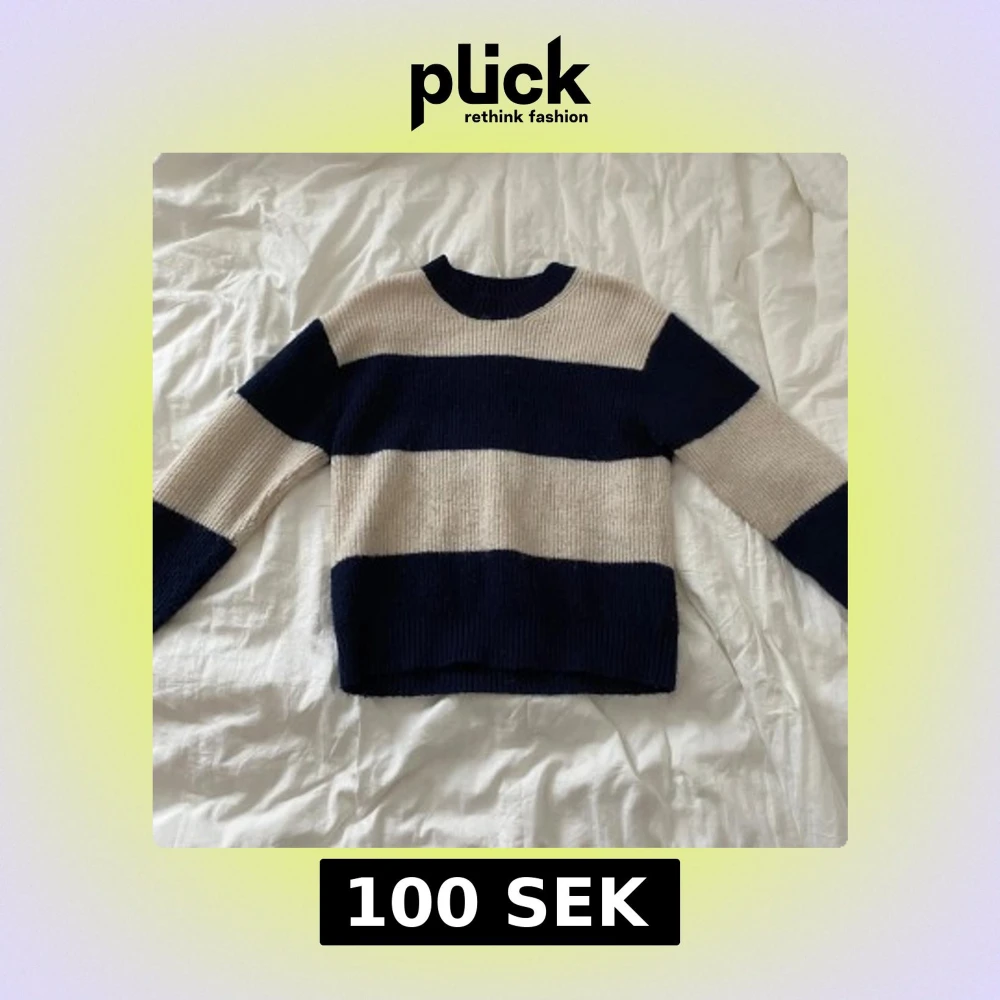 Säljer denna stickade tröja från H&M! Den är i fint skick och använd fåtal gånger, tröjan är vit och marinblå, är svårt att se på bilden💕