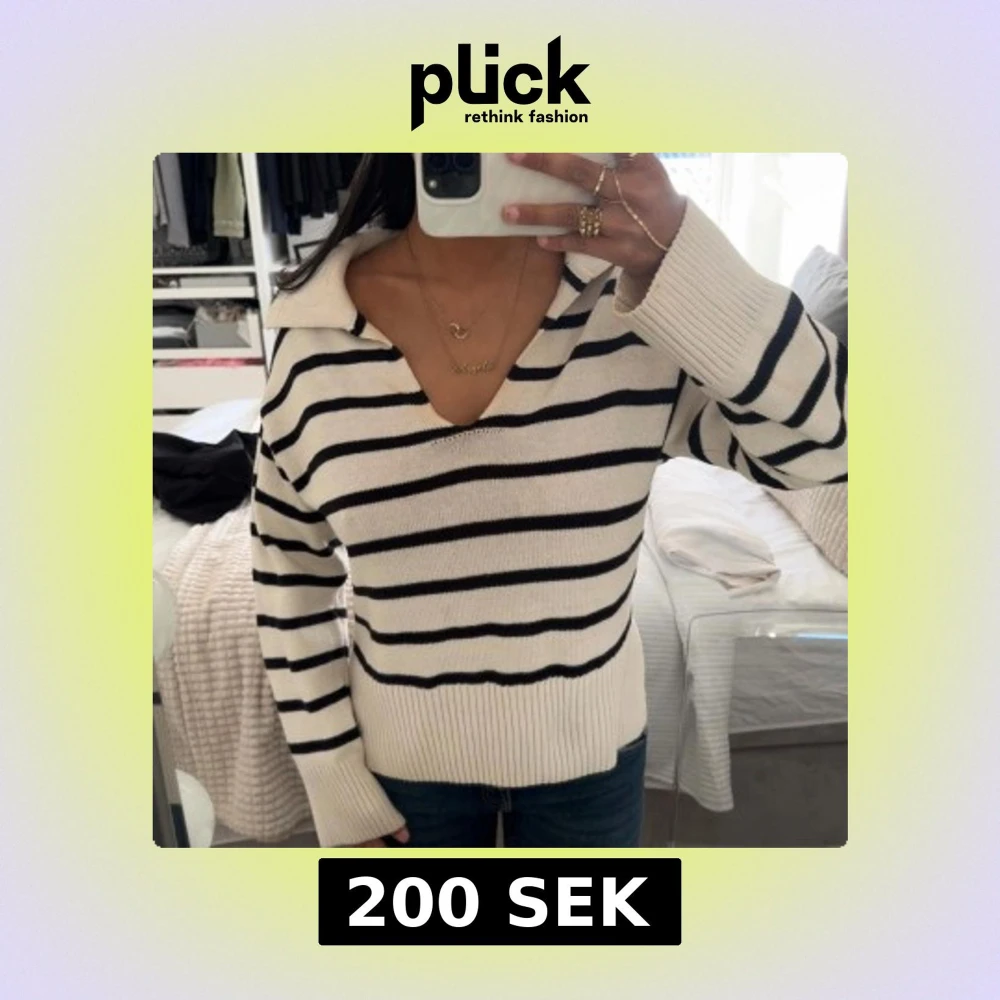 Snygg randig stickad tröja från GinaTricot. Pris kan diskuteras vid snabb affär💗Tröjan är i fint skick, utan hål eller fläckar!