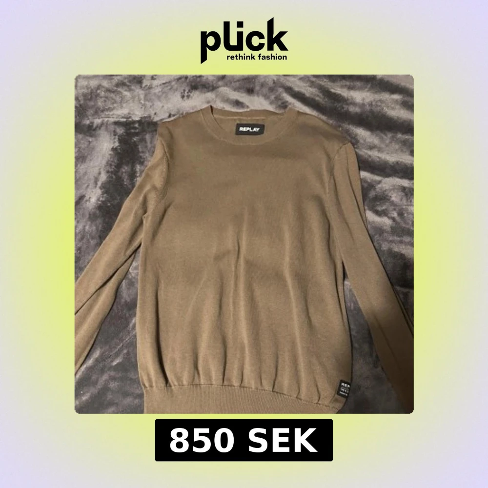 Säljer en stilren beige stickad tröja från Replay. Tröjan har rund halsringning, långa ärmar och en diskret logga nertill. Perfekt för dig som gillar en enkel och clean look.