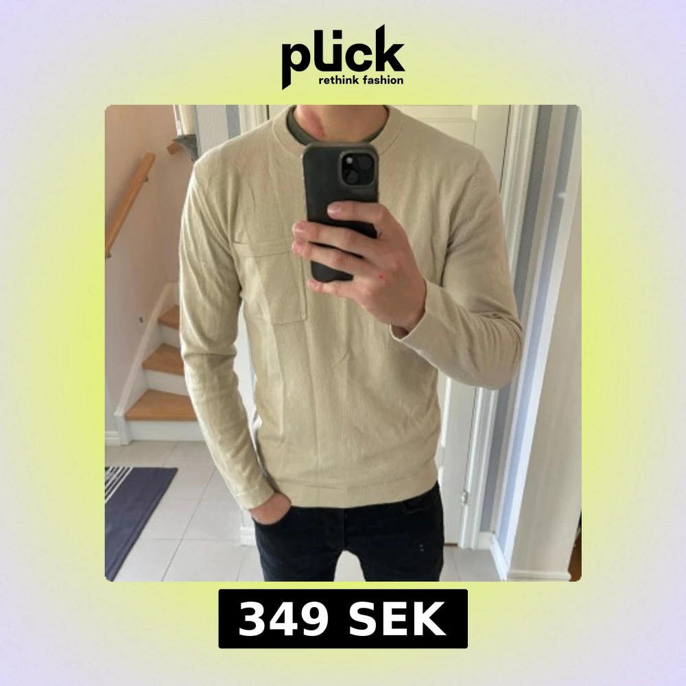 Snygg beige Riley stickad tröja. Han på bilden är 186 kg och väger Tveka inte vid minsta fråga eller fundering och pris ej hugget i sten