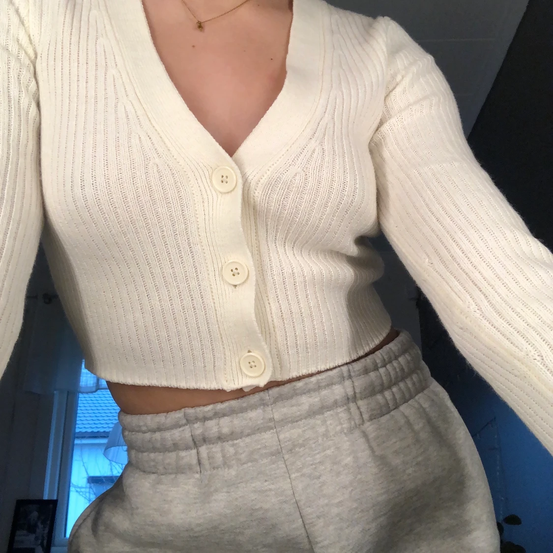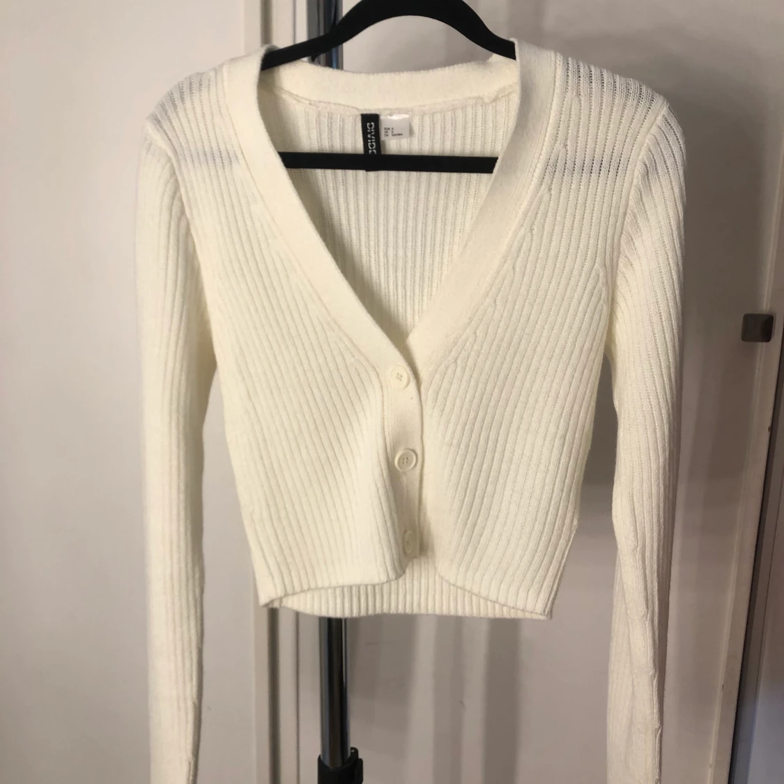 Säljer min vita stickade kofta från H&M. Otroligt fin passform och är i Strl S