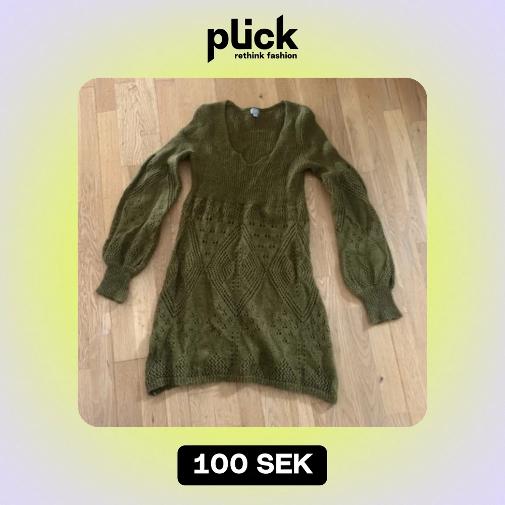 Säljer en superfin olivgrön stickad klänning från Lindex i storlek M. Klänningen har ett vackert mönster med hålstickning och en v-ringad hals. Den har långa ärmar med ribbade muddar och är perfekt för höst och vinter. Passar både till vardags och fest. Går även att ha över ett par byxor för en 2000-tals stil
