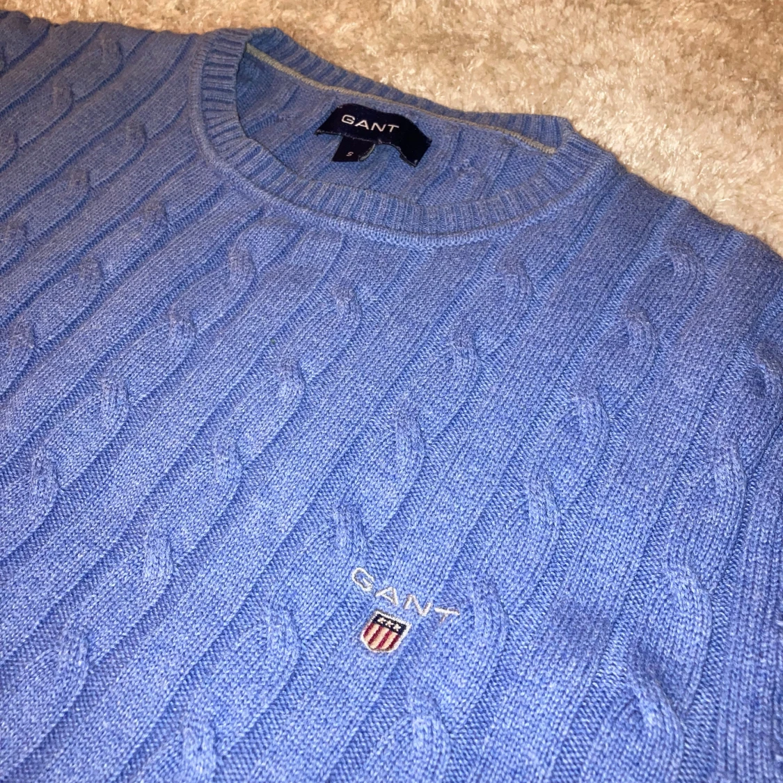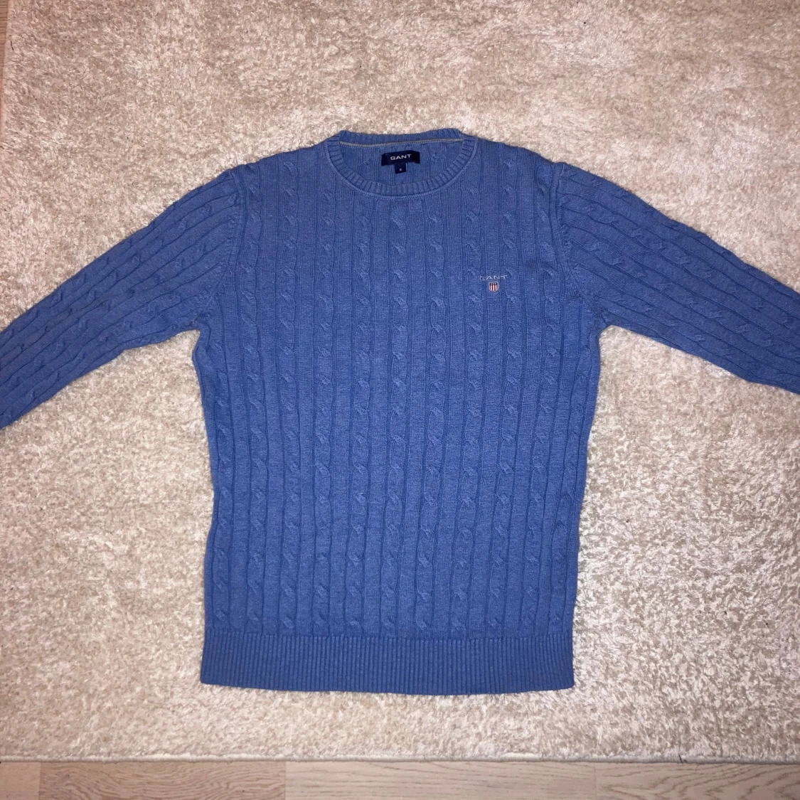 Säljer en blå ribbad Gant tröjja då den blivit för liten. Storlek S. Tveka inte på att skriva om du har några funderingar!