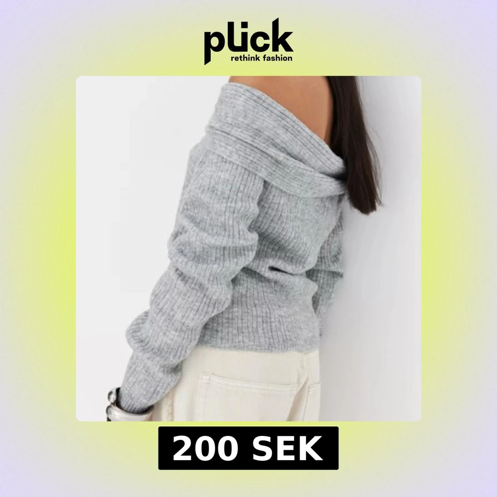 Ljusgrå stickad och ribbad off shoulder tröja från hm