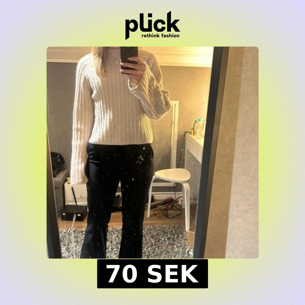 Säljer en mysig beige stickad tröja med ribbad struktur. Tröjan har långa ärmar.