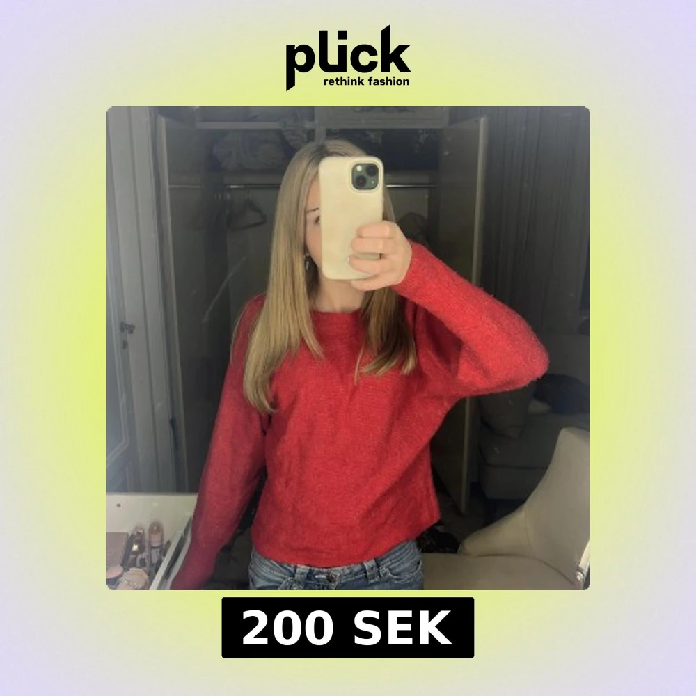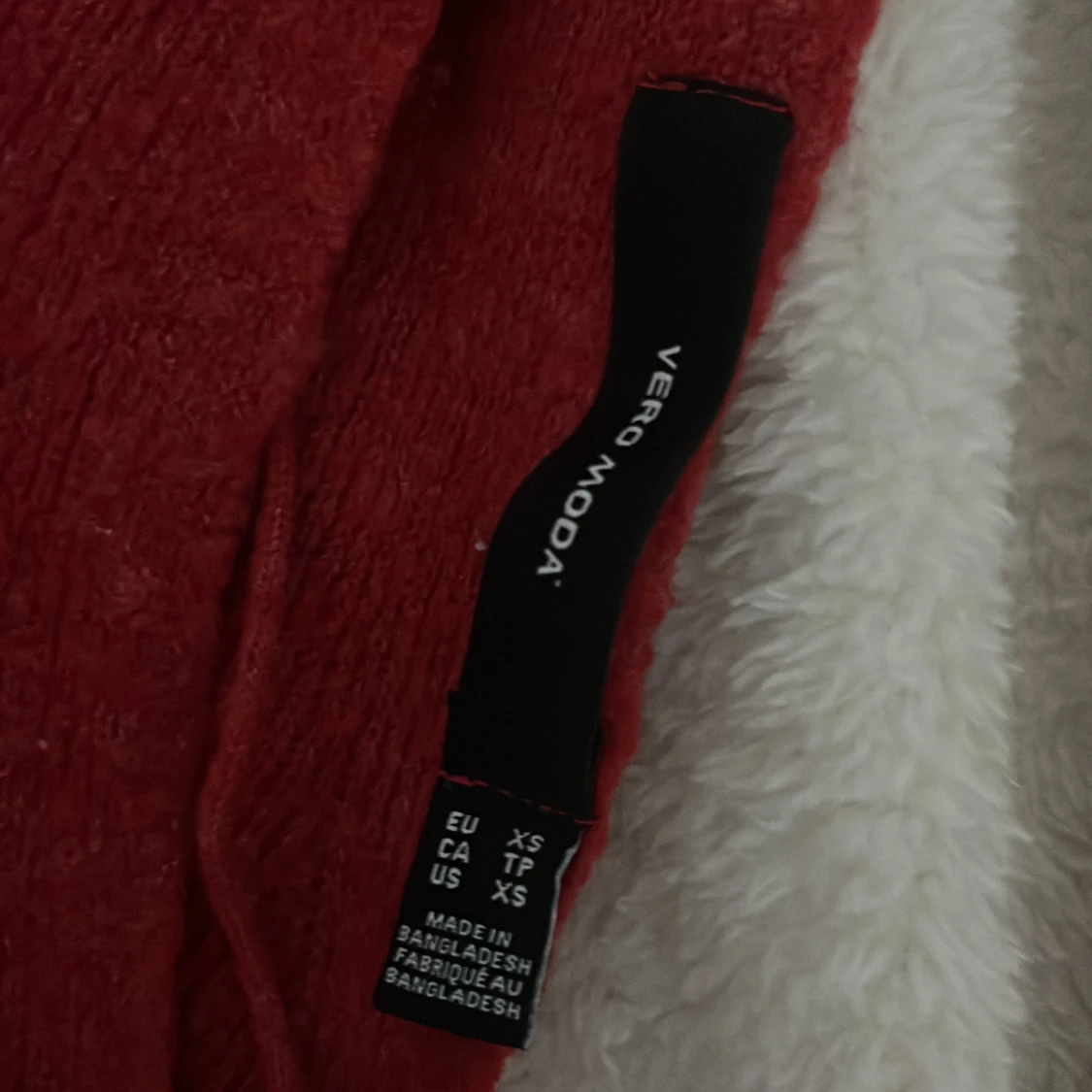 Säljer en snygg röd stickad tröja från Vero Moda i storlek XS. Tröjan har en klassisk rund hals och långa ärmar med loose passform.❣️
