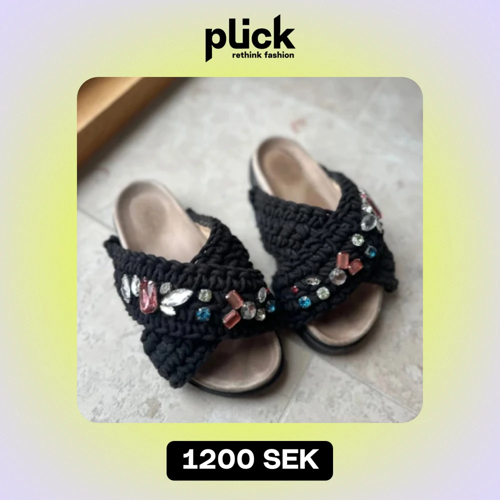 Säljer ett par unika svarta stickade sandaler från Inuikii i storlek 37. De har en cool design med stora, färgglada pärlor i olika former och färger som ger en glittrig och festlig look. Perfekta för sommaren och att sticka ut på festen! Nypris är cirka 3000kr. Saknas en liten sten men det är knappt ngåot som syns, se bild 4. Stora i storleken och passar även 38. köpte de precis innan sommaren men har använts mycket men de är fortf i bra skick!