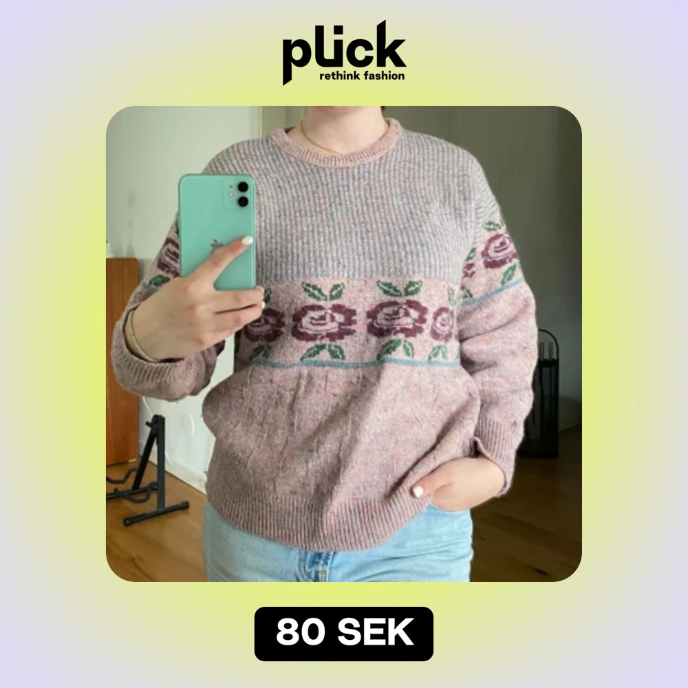 Mysig stickad tröja med urgulligt unikt mönster, sitter mer som en oversized S Ă€n M skulle jag sĂ€ga âïž